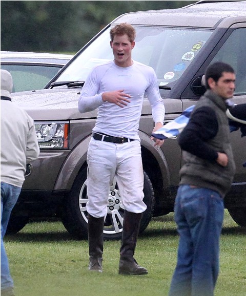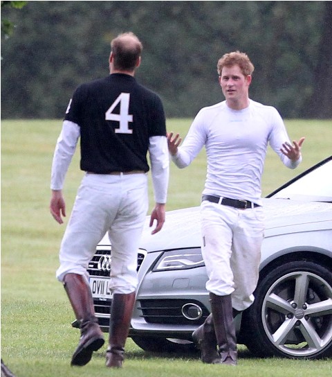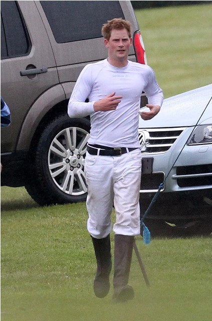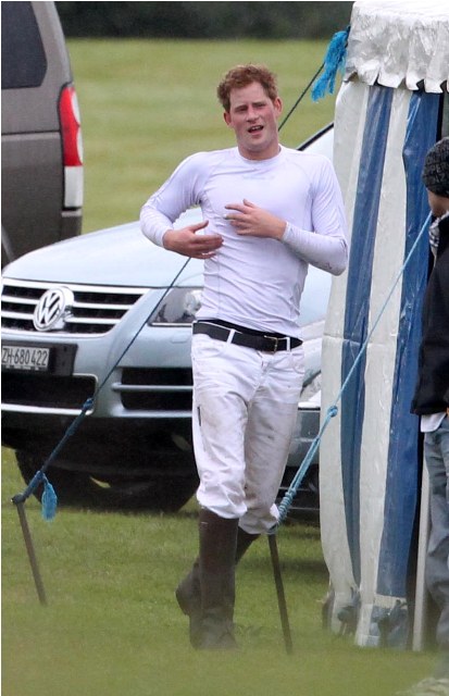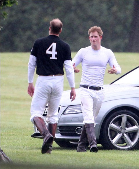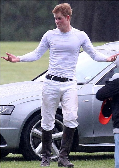 Here he is this weekend at a charity polo match with his brother, eventually losing to his brother, on Sunday after two days of official Family outings for his grandparents’ birthdays. I often wonder what it’s like between Hot Harry and the Queen. If she’s a regular granny that way, indulging her grandchildren, allowing them behaviours that she, in particular, would have never allowed her children. When Hot Harry for example f-cks up at dinner, or makes a scene at church, does Her Majesty just smile blithely, even affectionately, and carry on as if nothing happened? It kinda seems that way. Because look at how he conducts himself in public, how he has done for years. That’s the body language of a boy who’s not often corrected which, in itself, is a form of encouragement. They let Harry be Harry. So easy on the Spare.