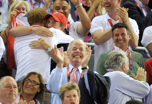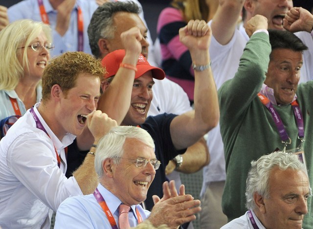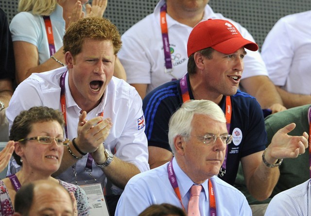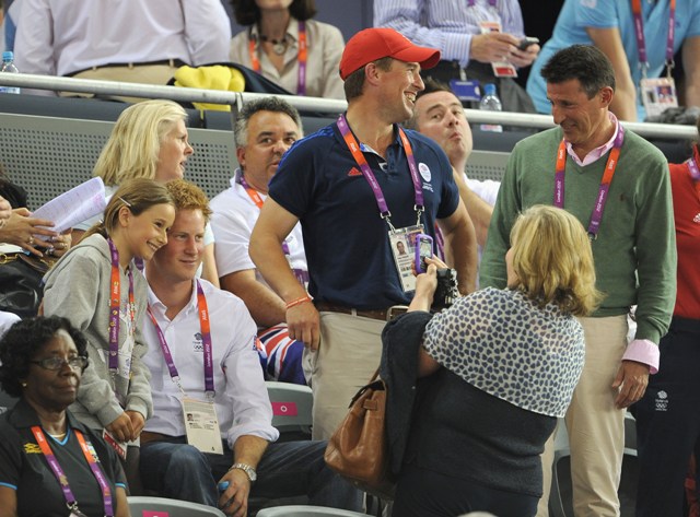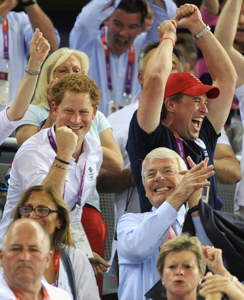 Anyway, check out Harry getting all fist pumpy and fangirly in the stands today. Unlike his brother last week, he didn’t have a wife to hug so he settled on his cousin Peter Phillips instead. Other royal cousins in attendance included Princesses Beatrice and Eugenie with their mother Sarah Ferguson.