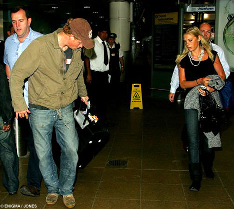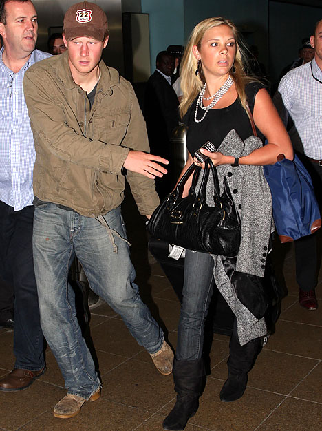 So how cute is this? My Chelsy arrived in London yesterday expecting to be collected from the airport by her Prince. Hot Harry on a Horse however apparently slept in. She was kept waiting for 40 minutes, hounded by paps, ringing him incessantly on her cell until he arrived, attended by his personal security detail only to pull her luggage… himself!