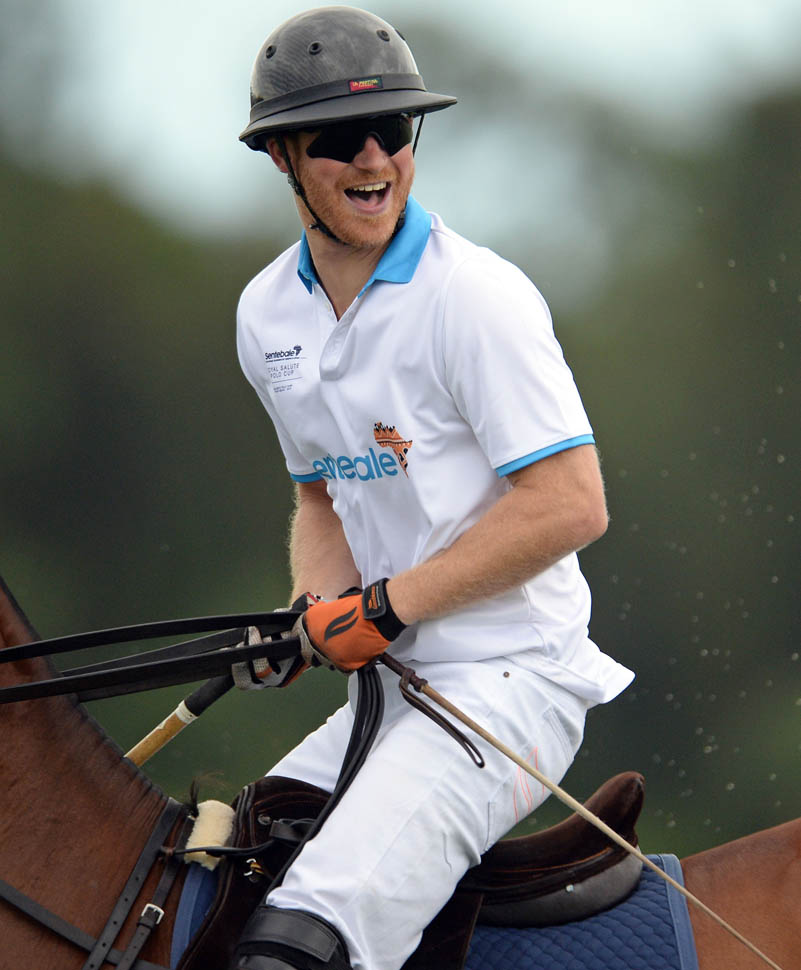 Because now we have pictures of Hot Harry on his horse, getting muddy, getting wet, the water coming off his face, clothes clinging to his body, his hair slicked, like he’s been worked over good…God he looks stupid sexy when he’s riding, remind me again why we invented cars? And why am I still talking.