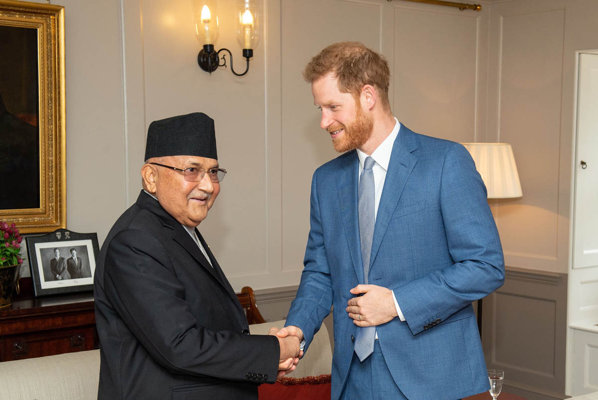 Prince Harry met with KP Sharma Oli, Prime Minister of Nepal, and his wife Radhika Shakya today at Kensington Palace. Harry travelled to Nepal in 2016, meeting with survivors of the Nepal earthquakes and toured the restoration efforts in the country. He also visited the British Gurkha Camp in Pokhara. The House Sussex Instagram account posted about the meeting, including an adorable shot of Harry as a boy: