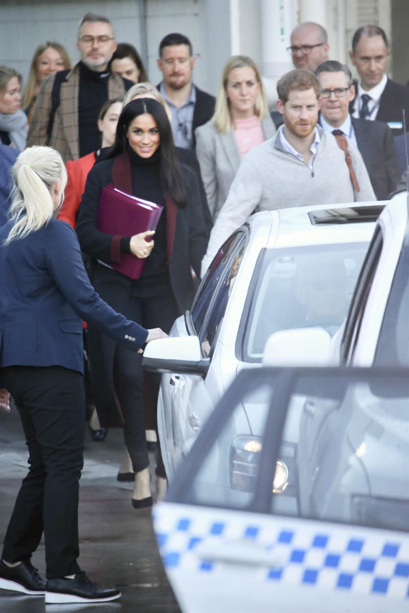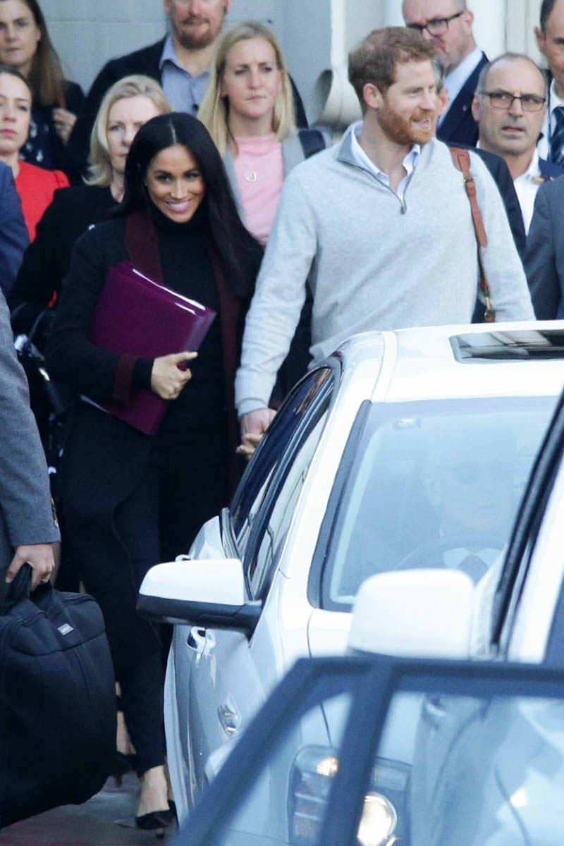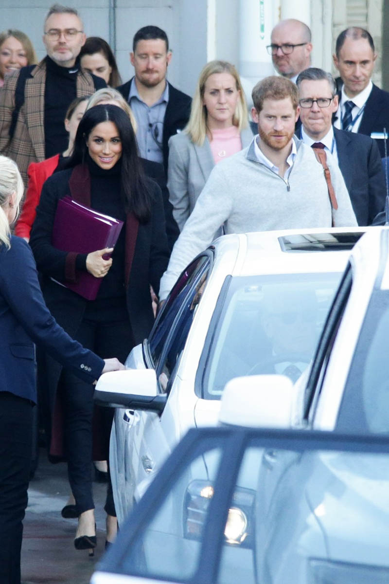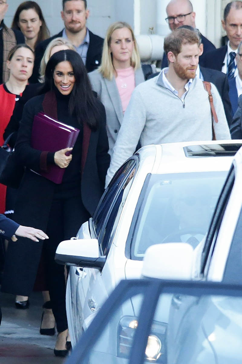 Now, a year later, another Invictus Games, their first overseas tour, and after weeks of speculation, it is now confirmed: Prince Harry and Royal Meghan are expecting. Not that there wasn’t already going to be attention on the trip but now there’s even more – because so far, even though they were photographed arriving, we’ve not yet had any shots of … you know. She was holding a binder in front of her body when they landed today. The Sussexes know better than to give up that kind of image on the first day. This is a long tour. They’ll space it out. They know the announcement today is enough.
