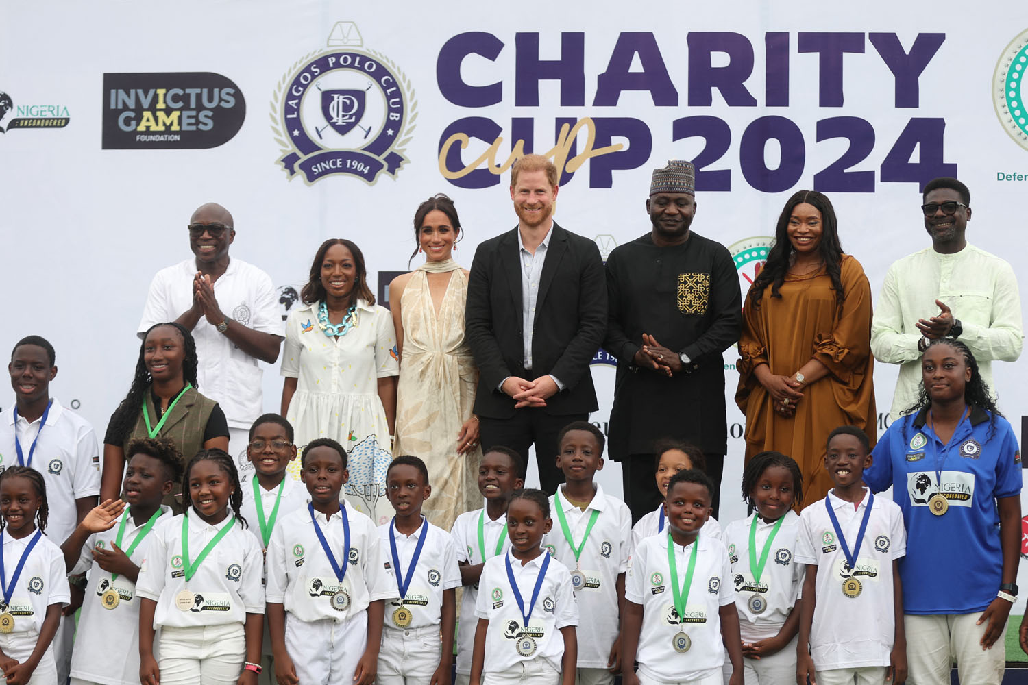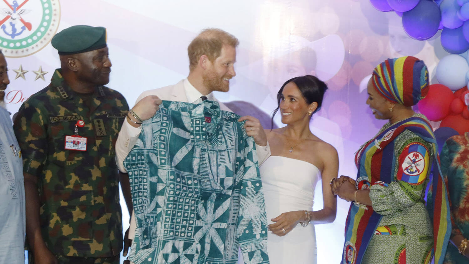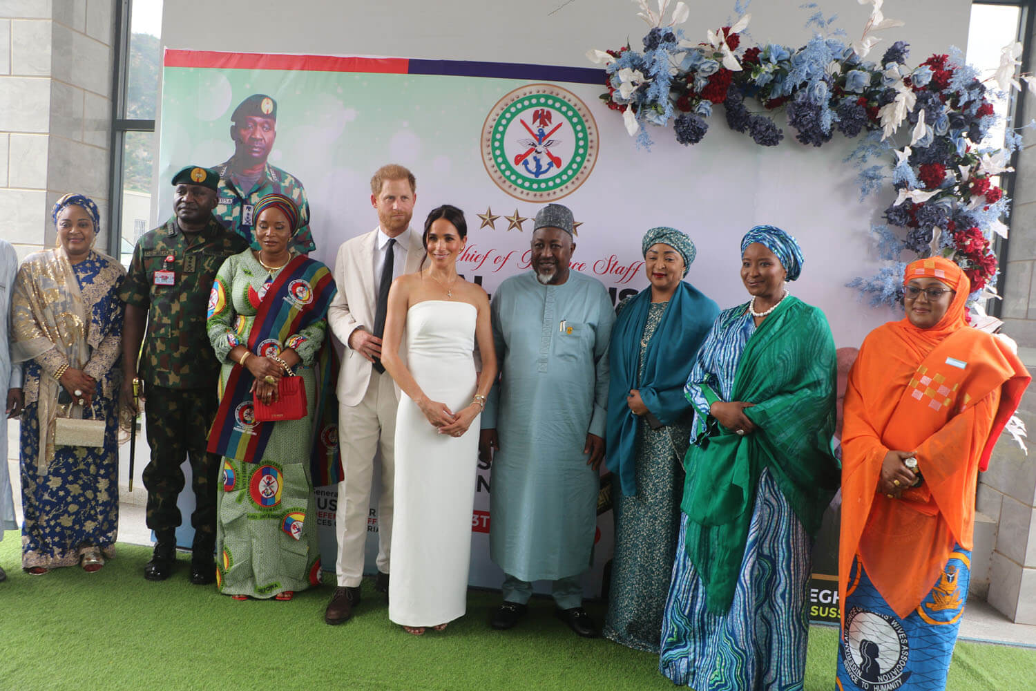 “Hosted by the Chief of Defense Staff, General Christopher Musa, it was a chance for the couple to speak to families of servicemen and women. Shortly after being seated, the couple rose along with everyone else to listen to the national anthems. The ceremony began with "God Save The King," during which the Duke and Duchess of Sussex stood at attention. Harry stood with his eyes forward and his arms by his side as the anthem played. The British anthem was followed by the Nigerian anthem.”