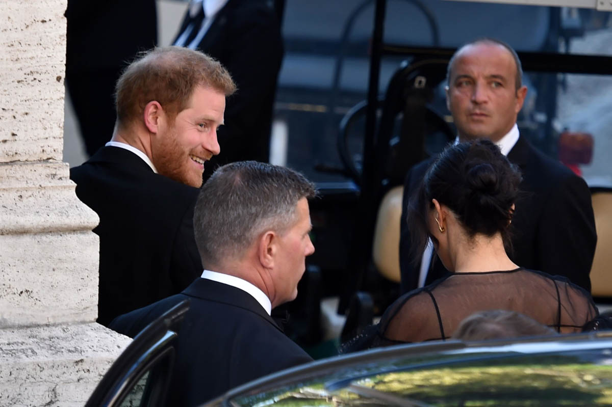 Here are some shots of Prince Harry and Royal Meghan arriving at Misha Nonoo and Michael Hess’s wedding tonight in Rome. I already wrote about this earlier, before the photos came through. We’ll talk more about this on Monday, along with their southern Africa tour photos, if we need to.