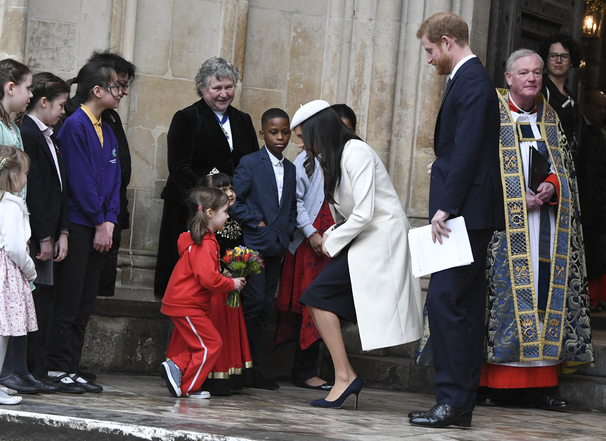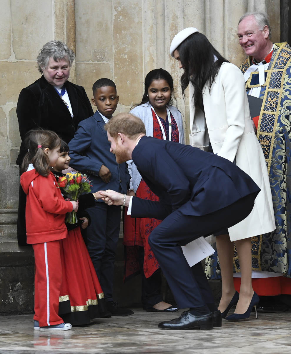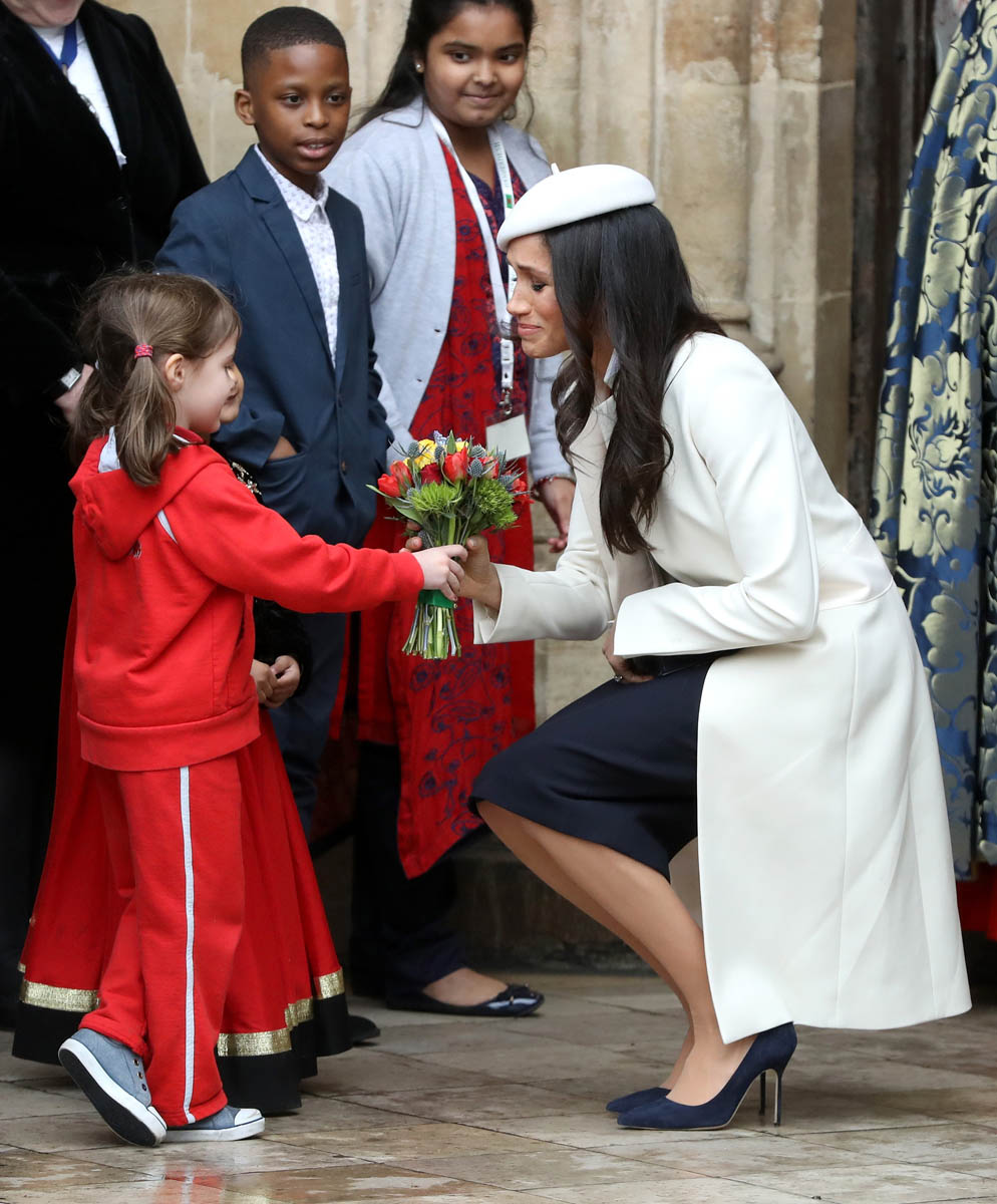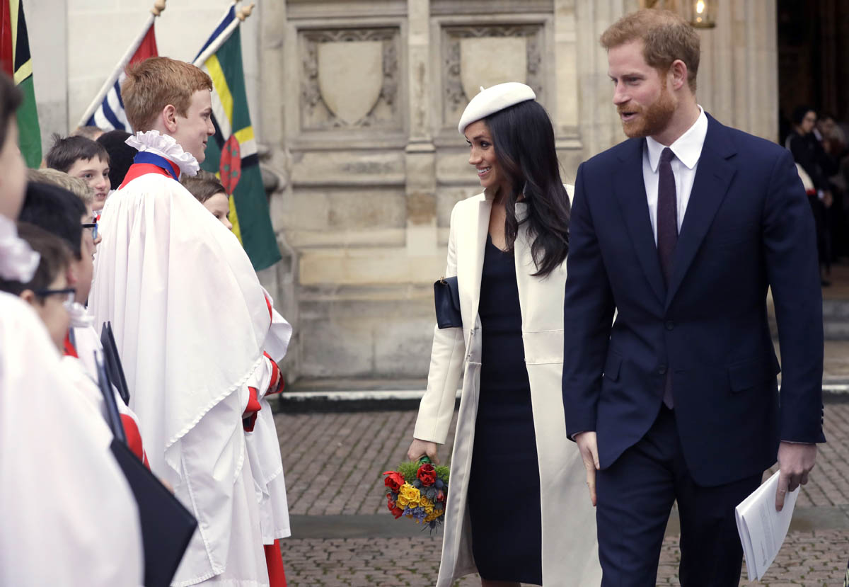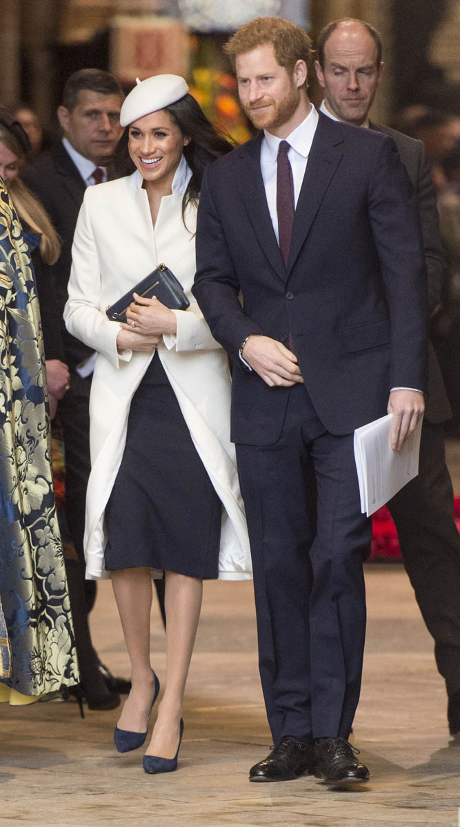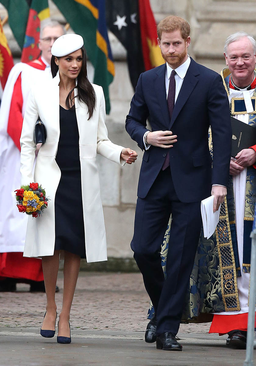 Meghan Markle attended what’s considered to be her most high profile official royal event today as the Queen celebrated Commonwealth Day at Westminster Abbey. Prince Charles and Camilla were there, along with Prince William and Catherine, and then it was Prince Harry and Meghan, representing the senior members of the royal family. This is a big deal. And the fact that Meghan was included is yet another sign of her acceptance among the most high ranking royals – actually THE most high ranking royal, Her Majesty herself. At this point it’s more than just the Queen indulging Harry, rewarding him for representing her so well over the last few years. That’s part of it, sure. But another part of it is how well Meghan has performed and they’ve seen it. They threw her in here with little to no “princess training” and she’s been impressively well suited to the role.