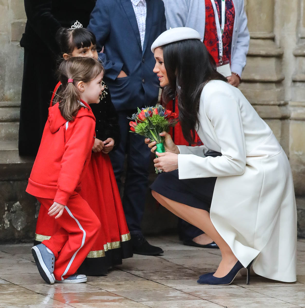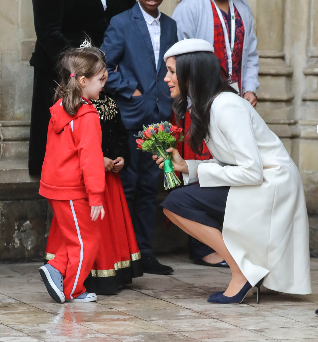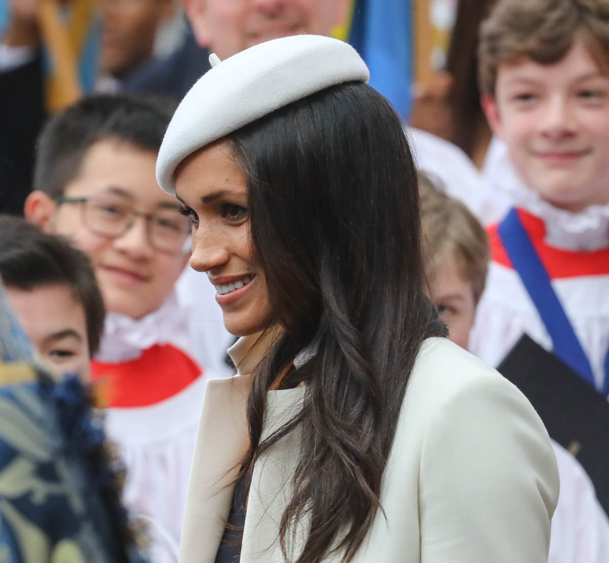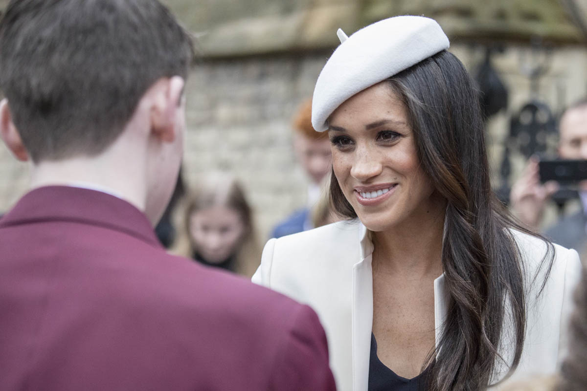 Let’s talk about the fashion choices here. Will, Harry, and Kate all wore navy. Meghan, as part of the foursome then, stands out, like right out, in white. Totally cool or offside? It’s a bride thing, don’t you think? My friend, Danielle Graham, the entire year leading up to her wedding, she wore white whenever she could. We even made it a recurring theme on etalk – oh look, it’s Danielle in white, again. We get it! You’re getting married! It was a full 6 months, I think, before Danielle eased up on the white clothes, grudgingly. I’m getting that vibe from Meghan too. She really does look cute in a beret though, non? Like, she had something extra going on today – extra photogenic, extra pretty in all her pictures. Especially this one, which made me double take. And I have stared at it for a long, long time: