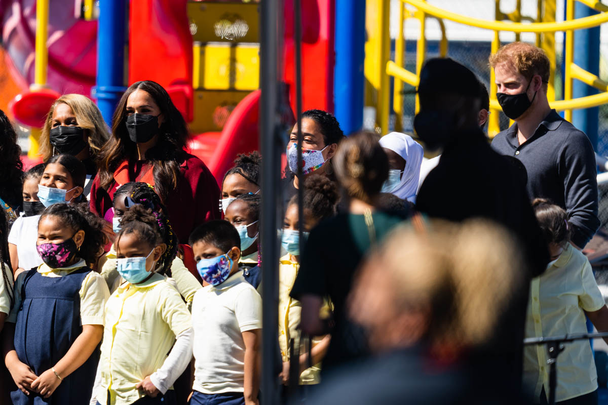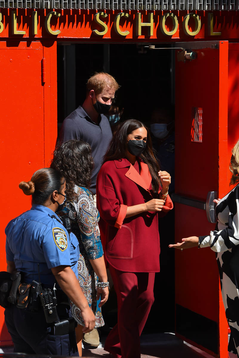 Without all that protocol then, Harry and Meghan’s New York itinerary, which was scheduled to look like a royal visit, was also much more casual and less uptight. They made a surprise visit to PS 123 Mahalia Jackson in Harlem where Meghan read from her book The Bench, and Harry sat with the kids, both of them giving out hugs and affection to the children who got to hang out with a prince and princess in the sun. They also made a donation through Archewell in partnership with Proctor & Gamble, stocking the school with supplies and food before heading to lunch at Melba’s, where they gifted $25,000 towards the restaurant’s COVID relief fund.