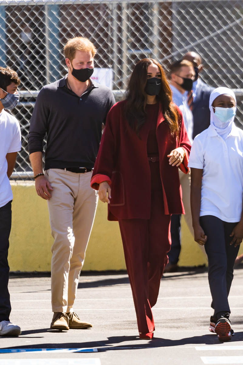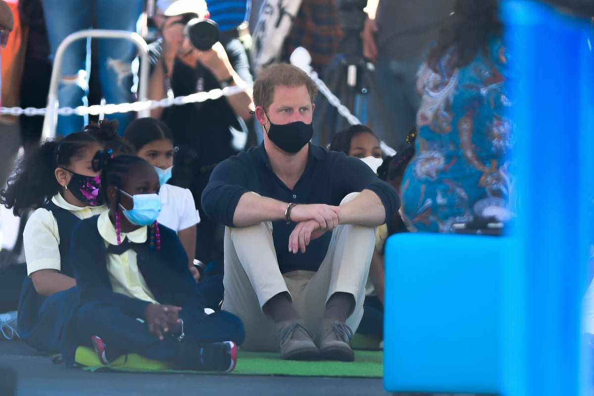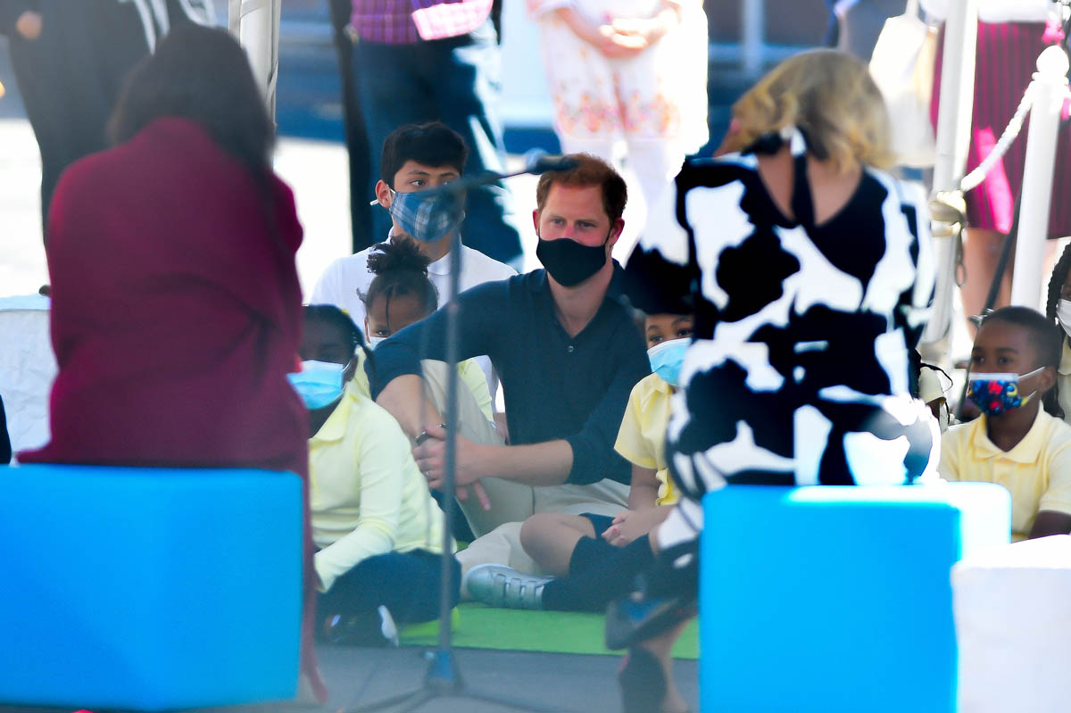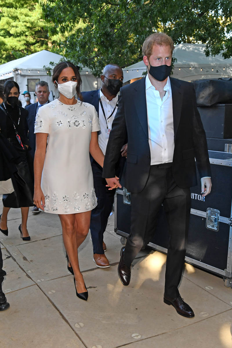 As you can see, Harry’s outfit for the day was a black polo and khakis, much more relaxed than the suit he would probably have been required to have on if this was an official royal outing. It’s more in line with the chiller vibe that the Sussexes are branding for themselves. Which was also on display at the Global Citizen event on Saturday.