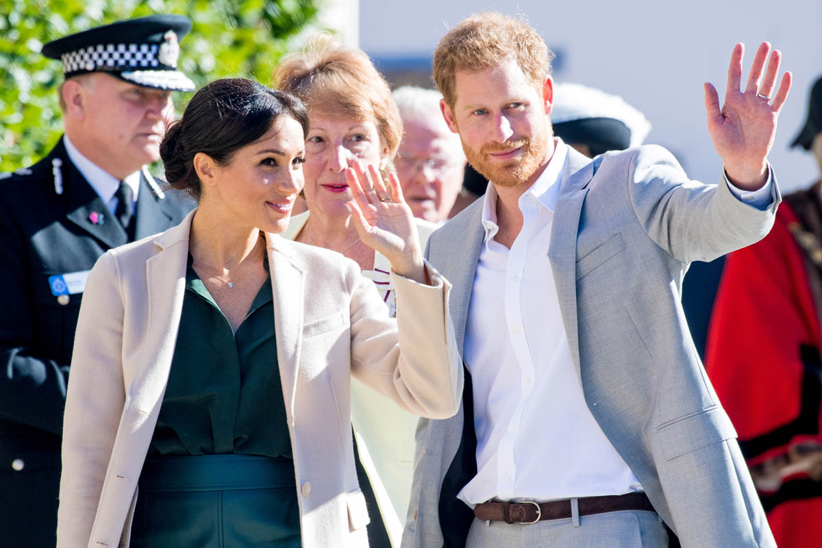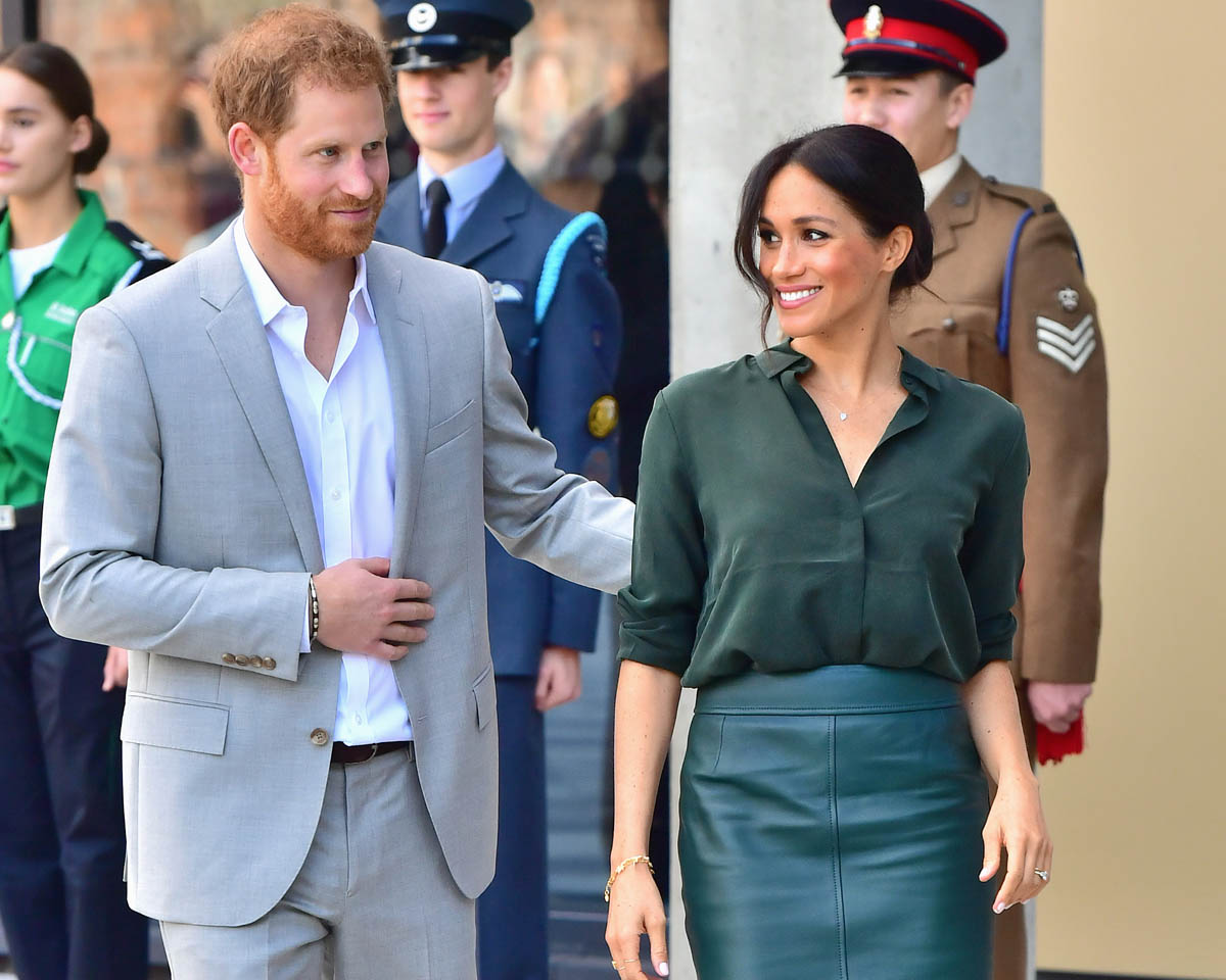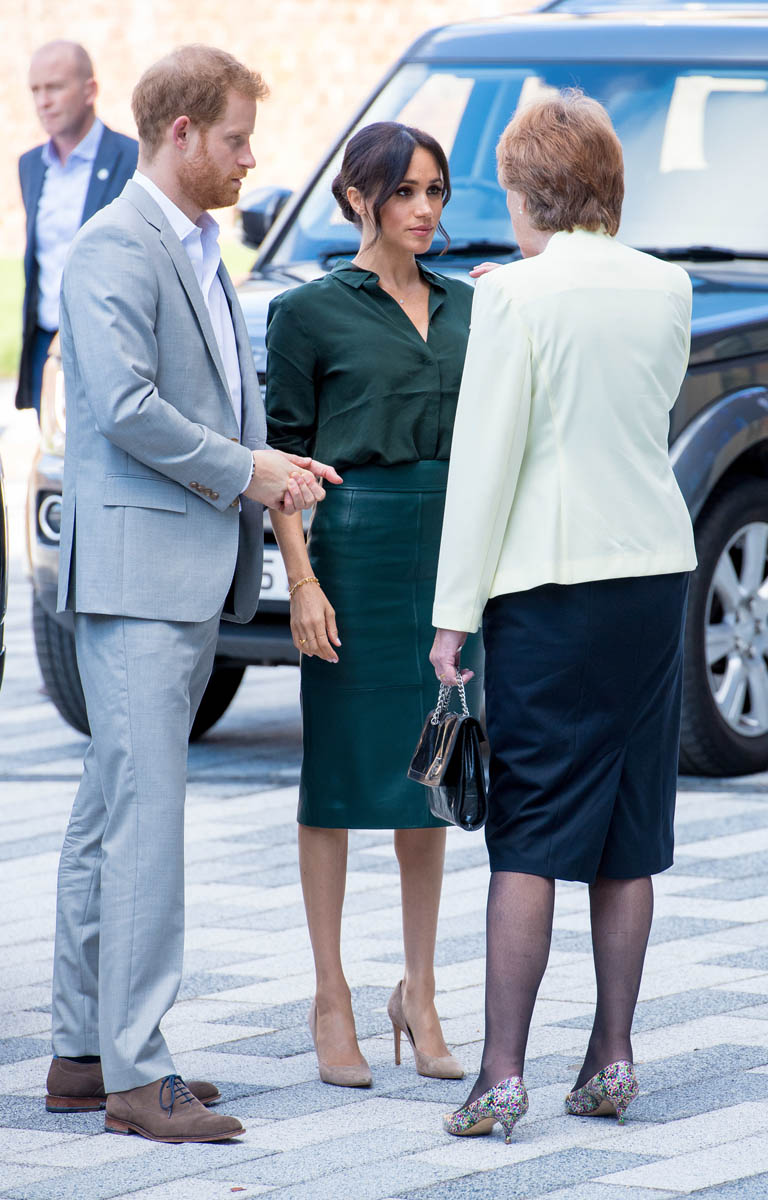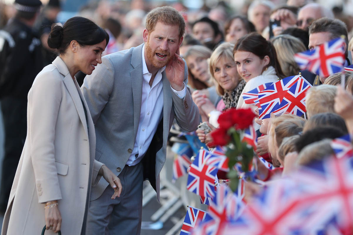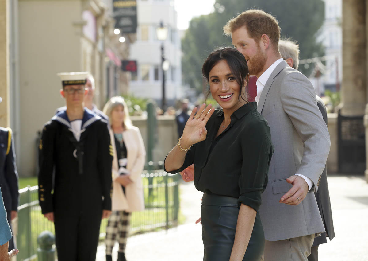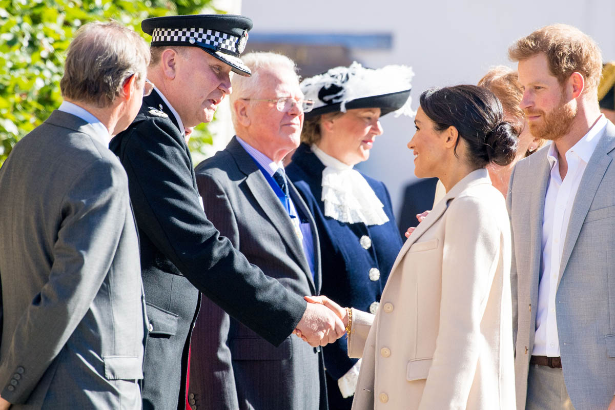 As always, the Sussexes seem super relaxed and engaged. I’ve not yet seen any of their signature PDA yet but Royal Meghan had a cute moment when she broke into giggles, reacting to the screams of the crowds behind them while they were meeting the mayor and the bishop: