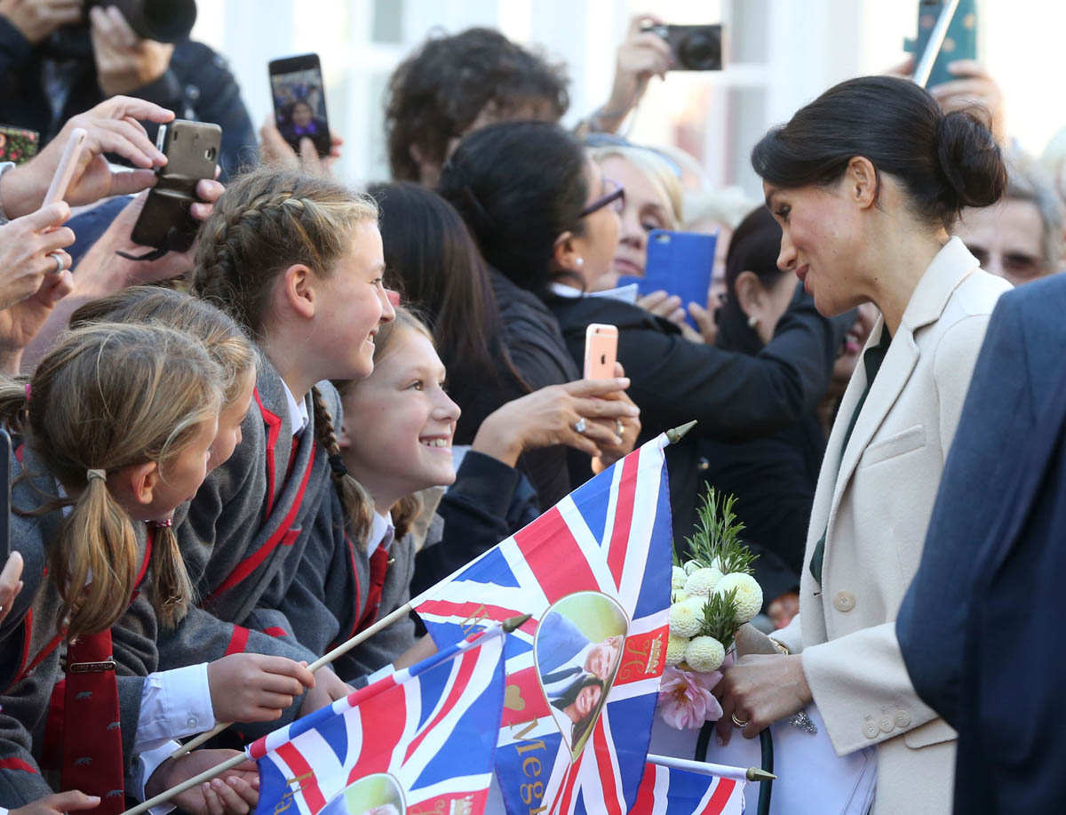 And here’s a video Royal Meghan during the walkabout, talking to some kids and their teachers after receiving an A-Z of Sussex so you can obsess over whether or not she now has an English accent. Note however that she still says “Z” the American way.