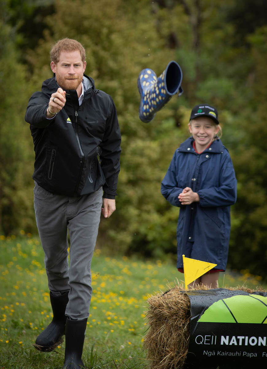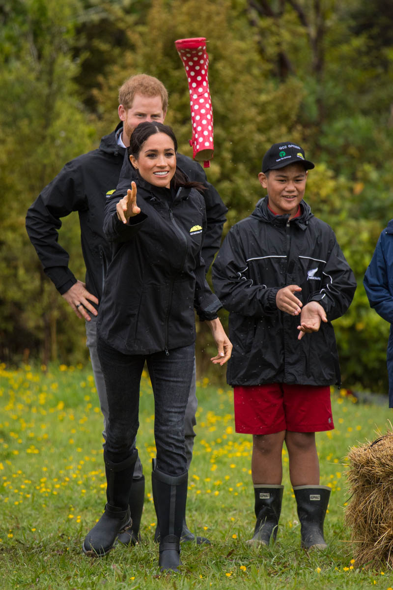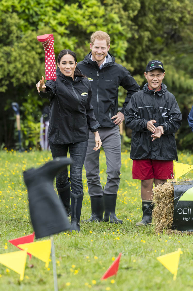 Almost there. Prince Harry and Meghan Markle have just completed their second-to-last day of events on their first overseas tour. They visited the Northshore Riding Club where they competed against each other in a “wellie wang” (tossing rainboots), and planted a tree for the Queens Canopy, and met with Pillars, an organisation working with children of prisoners, and there was a walkabout, and then a reception at the Auckland Museum War Memorial.