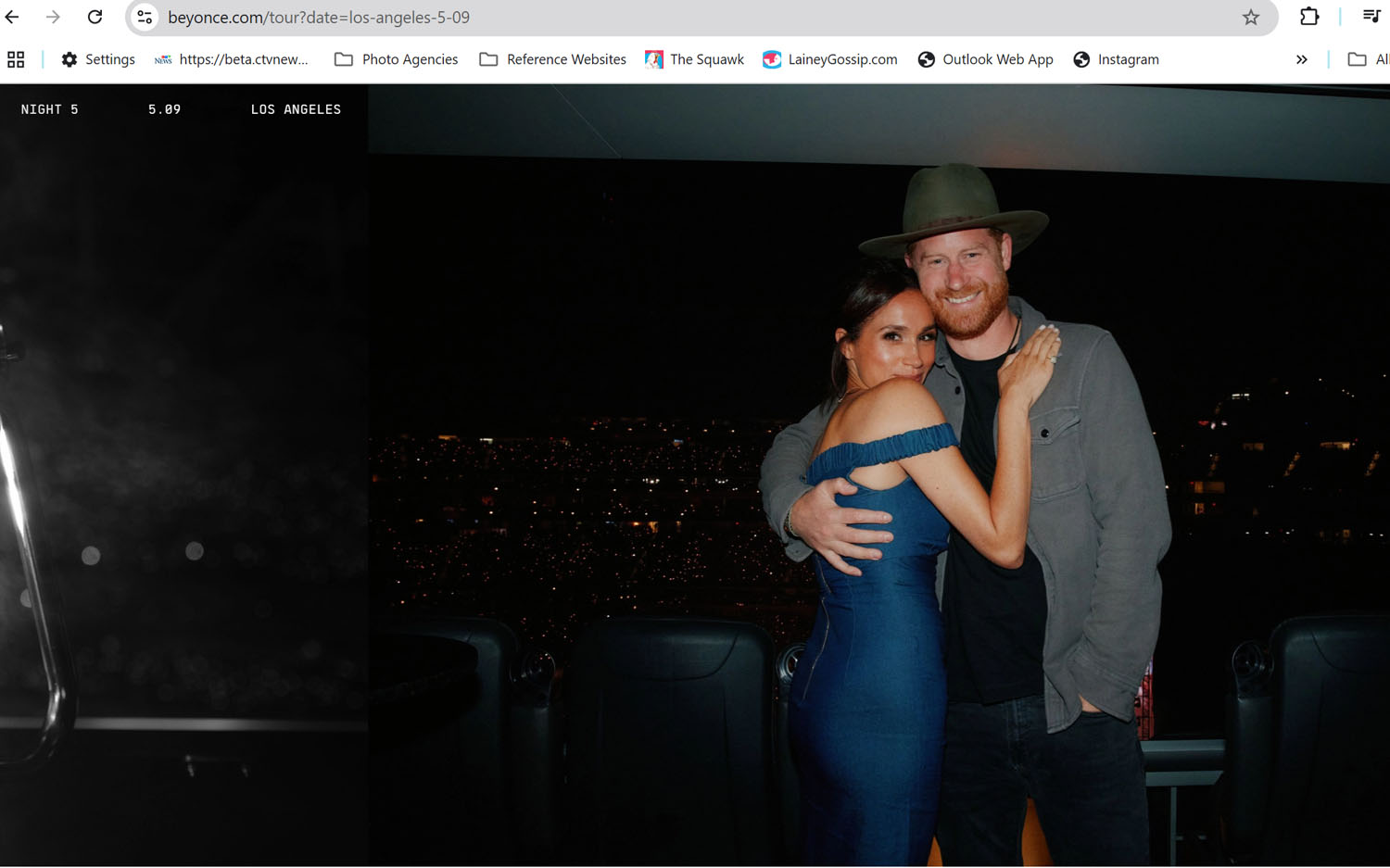 Back to the Queen’s last show in LA though – Prince Harry and Meghan Sussex were in the audience. And Beyoncé posted a photo of them on her website.
