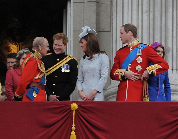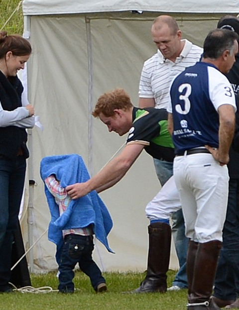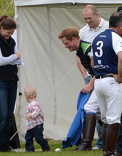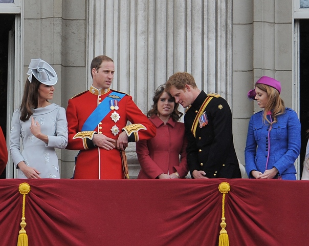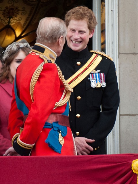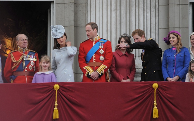 Anyway, both Harry and Eugenie were required to be royal and proper the next morning for Trooping The Colour. For someone who was hitting it so hard just a few hours before, Harry looked great and not terribly hung-over in his blue beret, my favourite. I like to believe he is his grandfather’s favourite. That it’s Harry who can tease the Duke of Edinburgh about farts and hearing aids and get away with it. Which is why he must be the favourite uncle too. Check him out being all cute with Savannah Phillips. It’s like he relates better to babies and dogs.