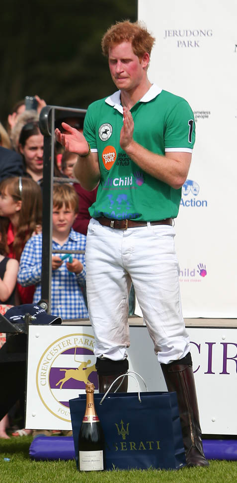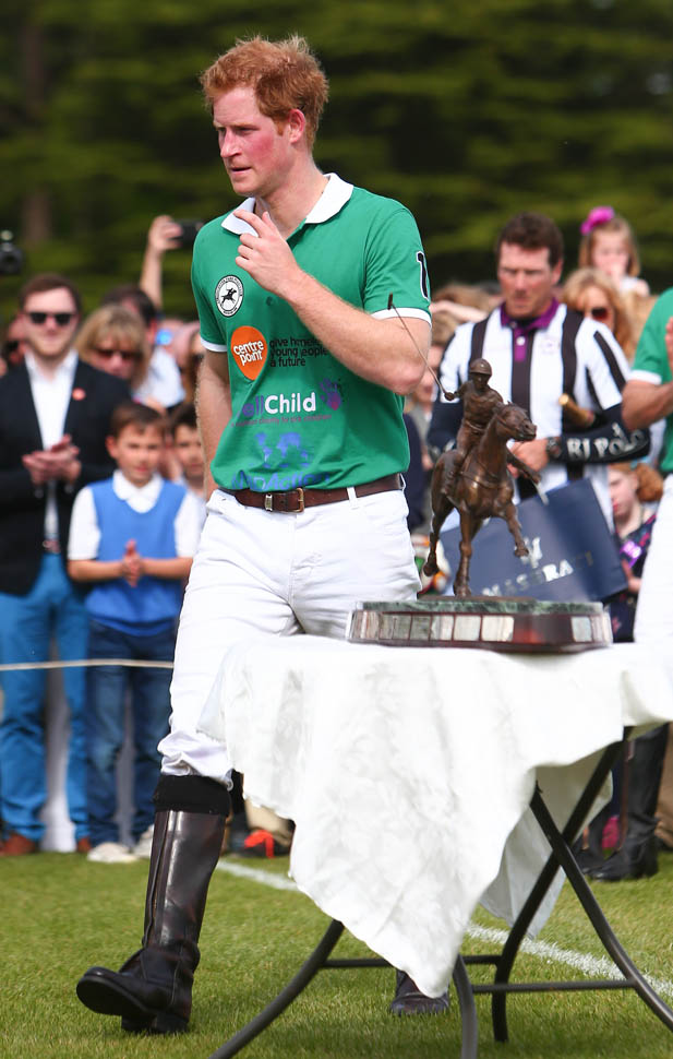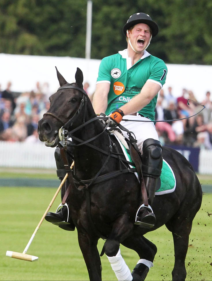 More importantly, he played polo on Sunday. Ginger and green is a great combination. As is Hot Harry and a horse. And the white pants. Also, Harry’s competition face. Competition face and sex face can be quite similar, non?