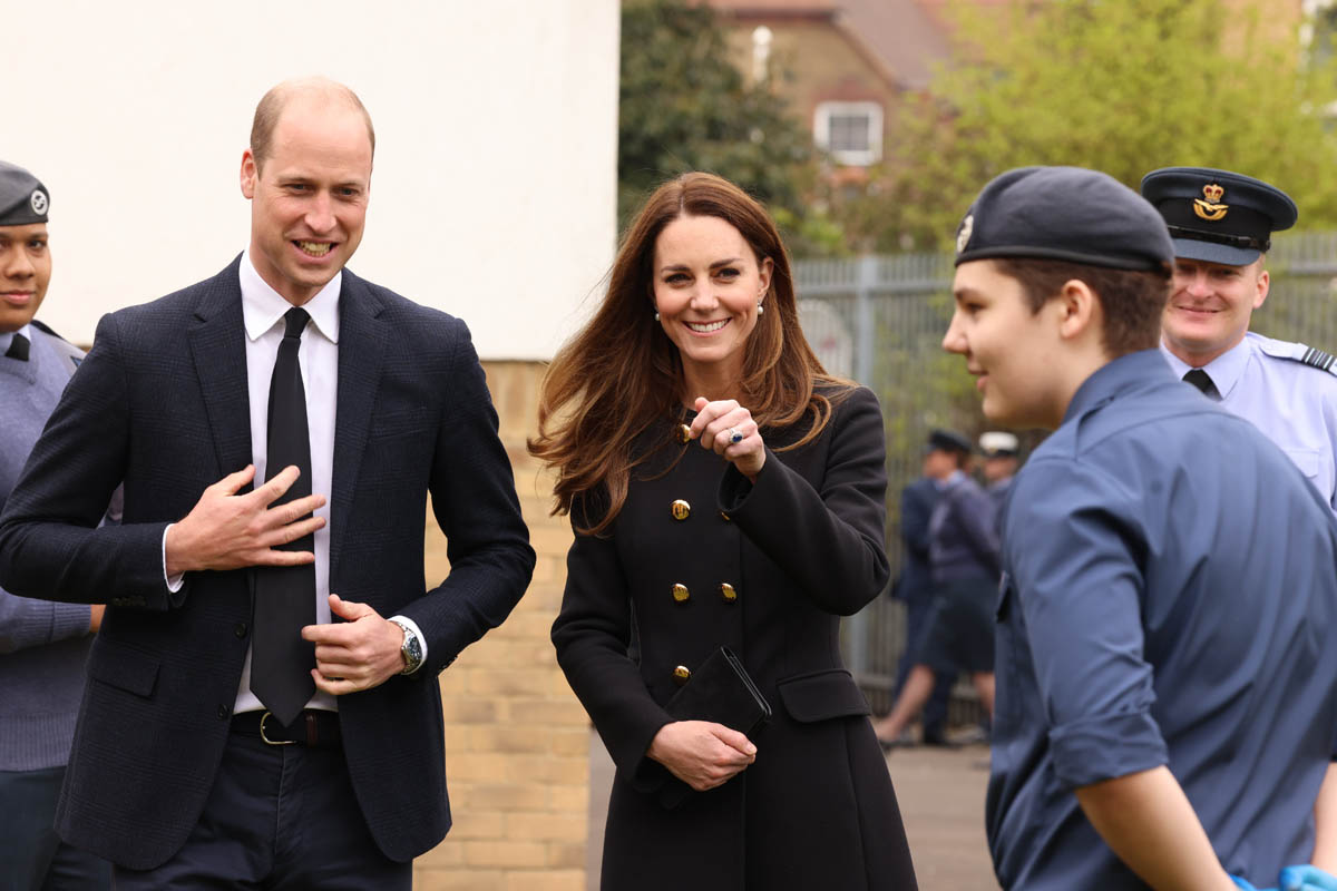 Here he is, with Kate, theme-dressing for the occasion, at the Air Training Corps in London today. Kate is the Honorary Commandant, a patronage passed on to her by Prince Philip.