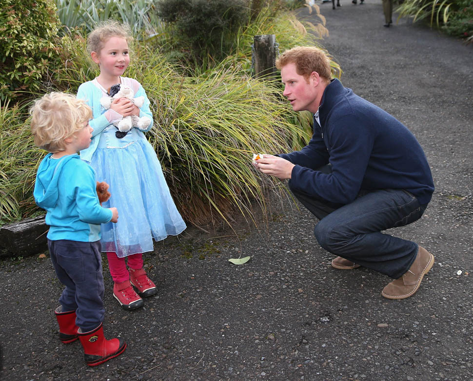 Prince Harry spent the weekend touring New Zealand. As usual, he was delightful – with everyone, from adults to children to even old lizards. Harry also gave an interview and, seeing as how his princess niece has just arrived, he was asked about whether or not he wants kids…and when.