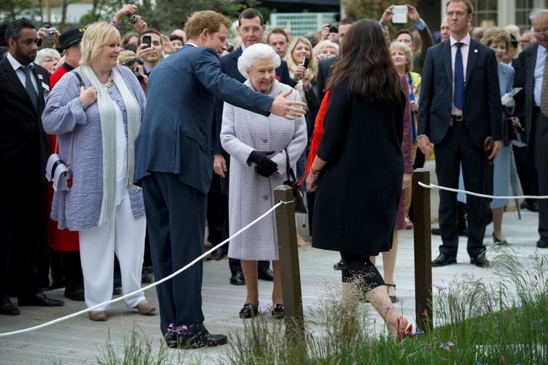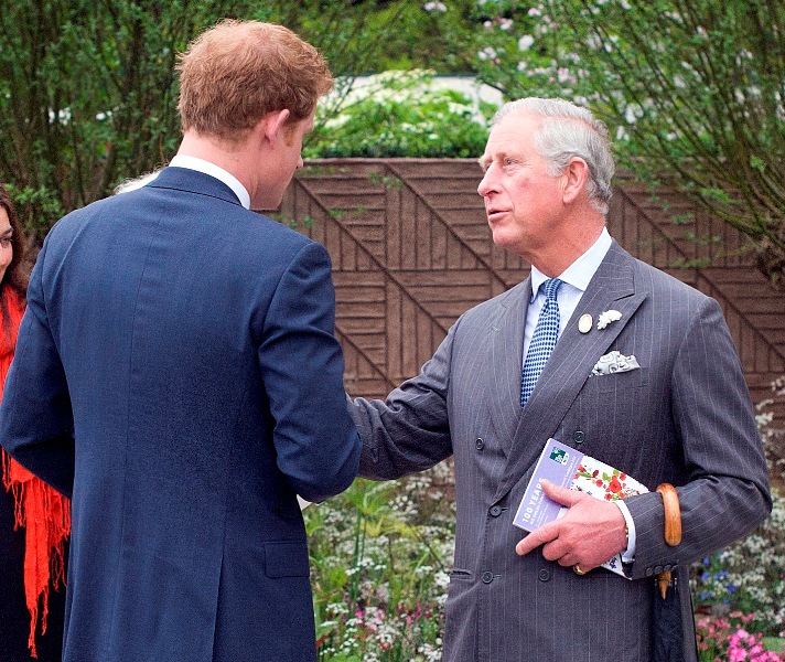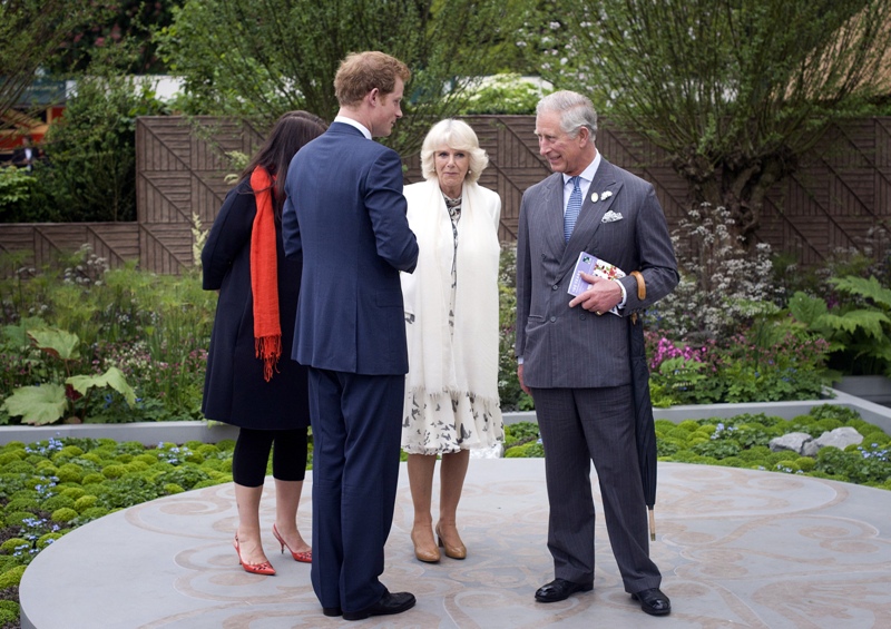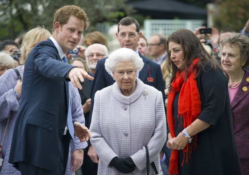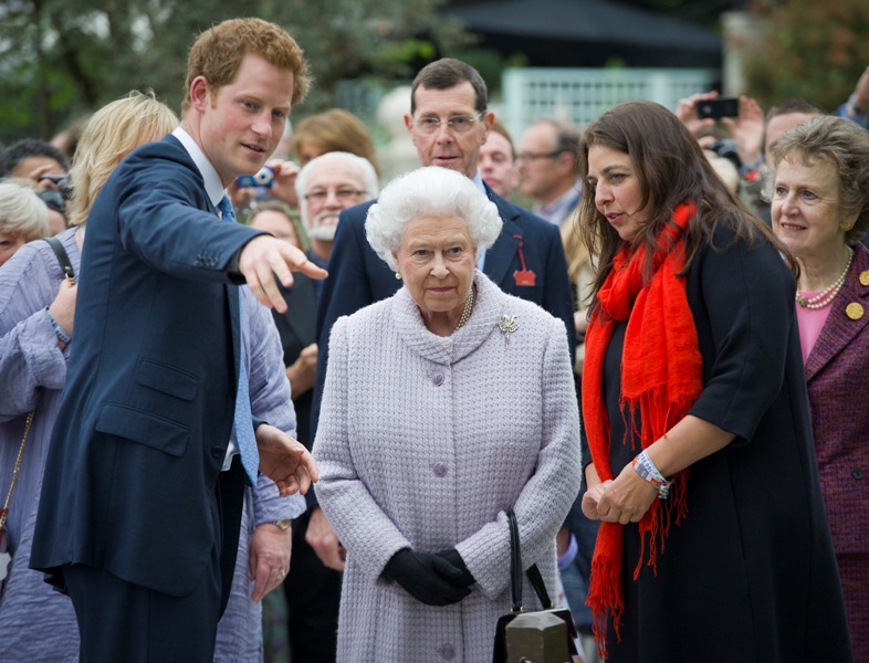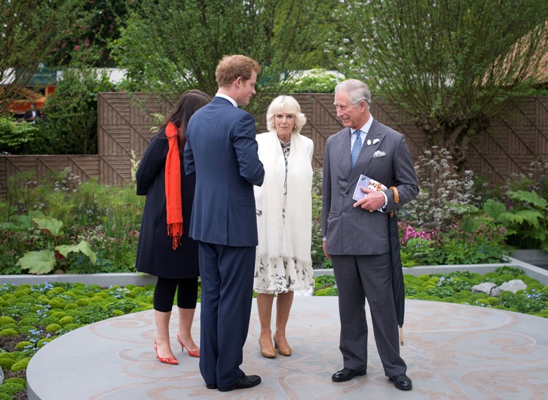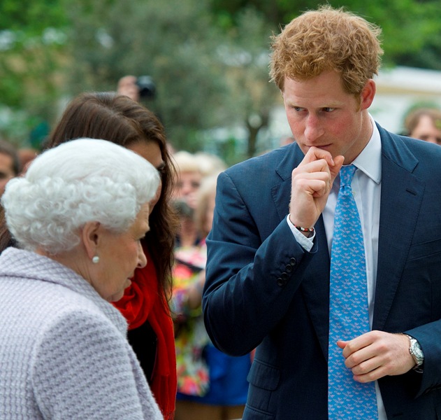 Harry was busy yesterday. He and his brother visited with injured service personnel in Tidworth -- click here to see those photos if you missed them -- and then he was in London at the Chelsea Flower Show in support of his Sentebale charity’s forget-me-not garden. And his family came to support HIM!