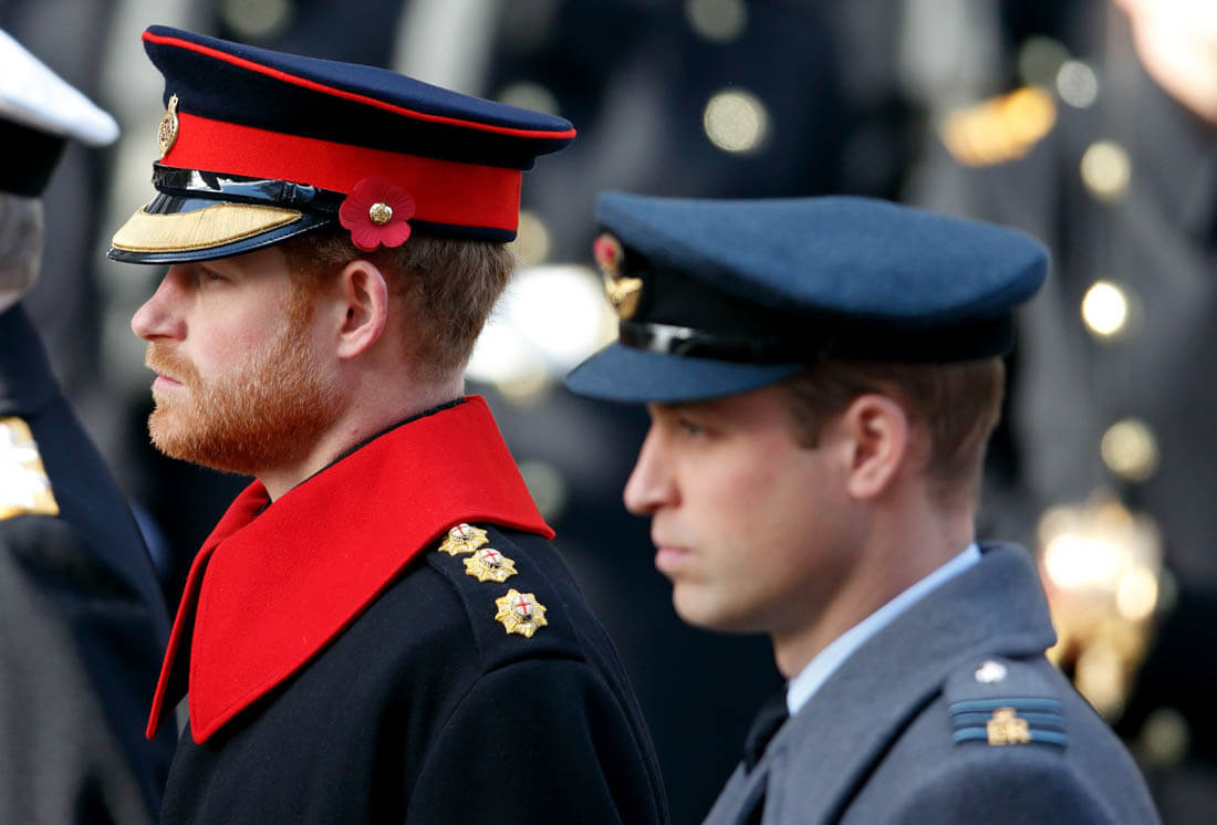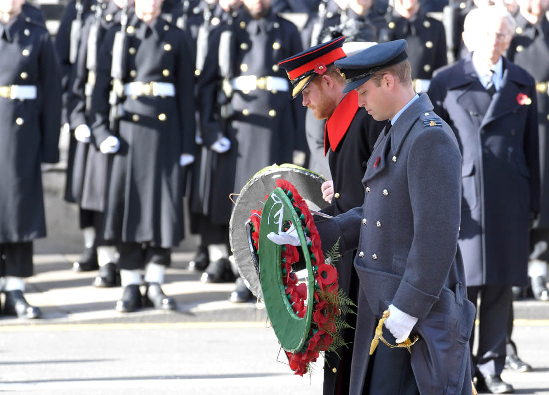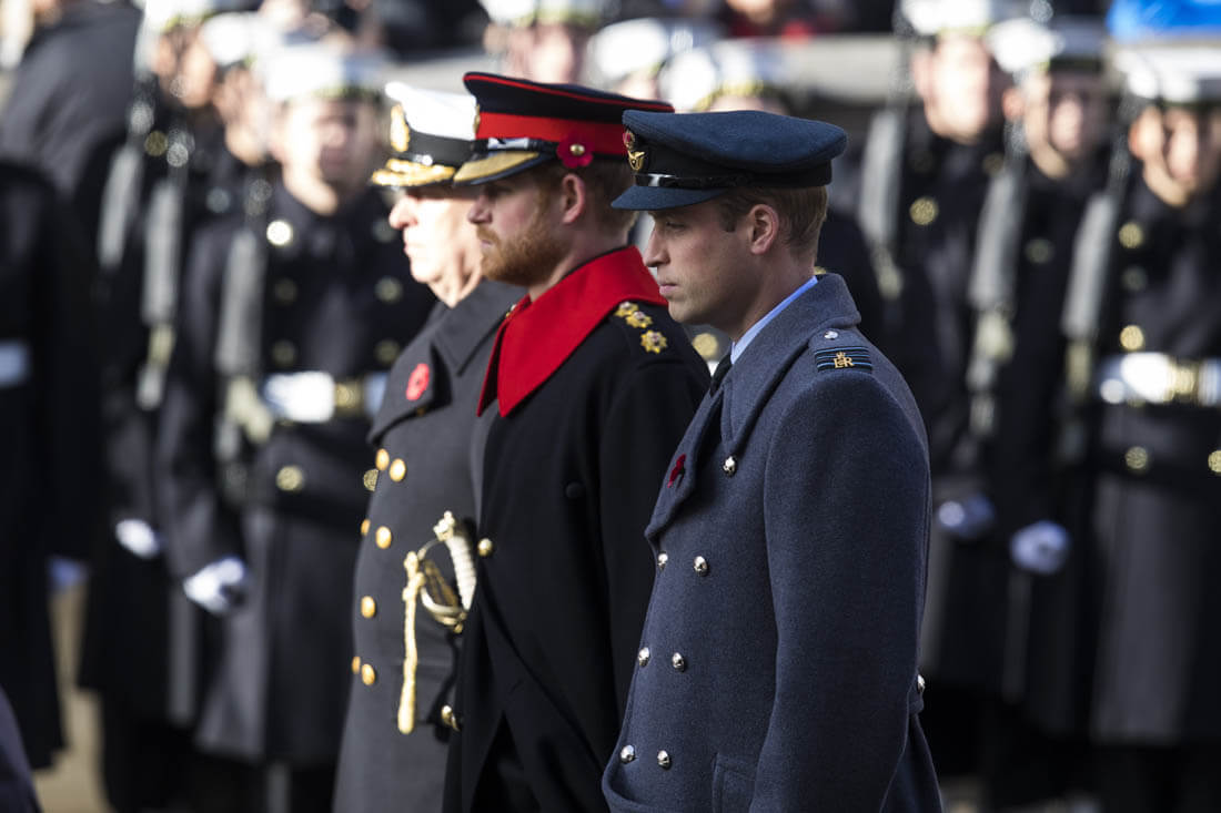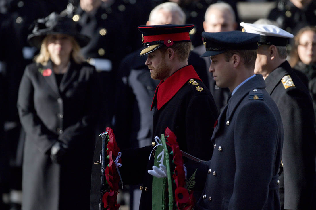 It was family duty over romance for Prince Harry this weekend. Here he is yesterday, Remembrance Sunday, with Prince William at the Cenotaph. Princess Kate was also there, joining her mother-in-law, Duchess Camilla, and Sophie, Countess of Wessex. Last night, William also attended and presented at the Evening Standard Theatre Awards.
