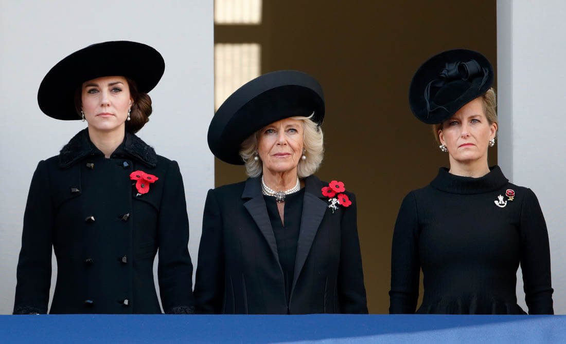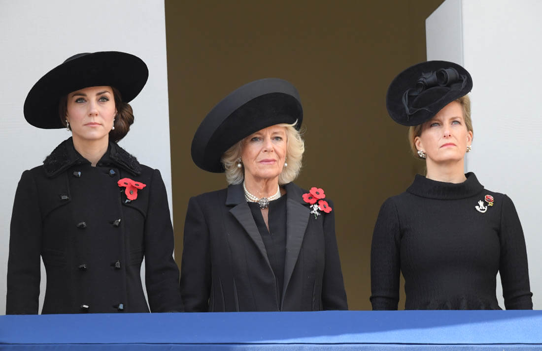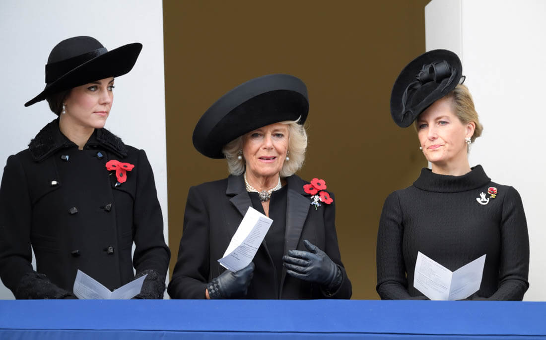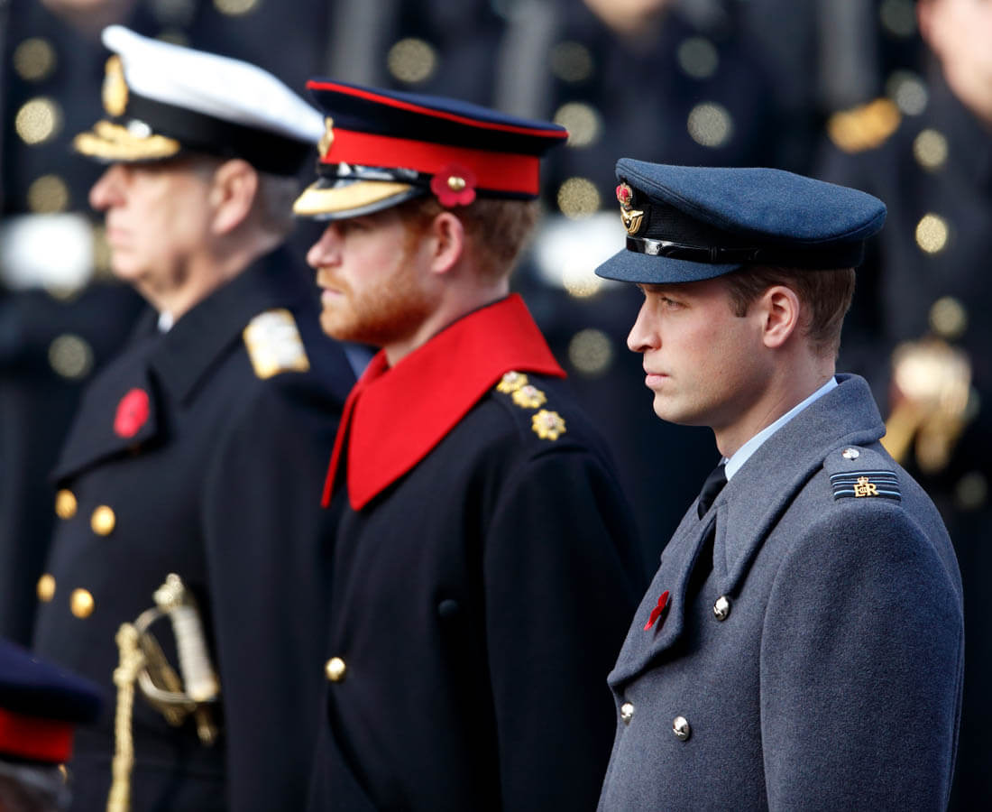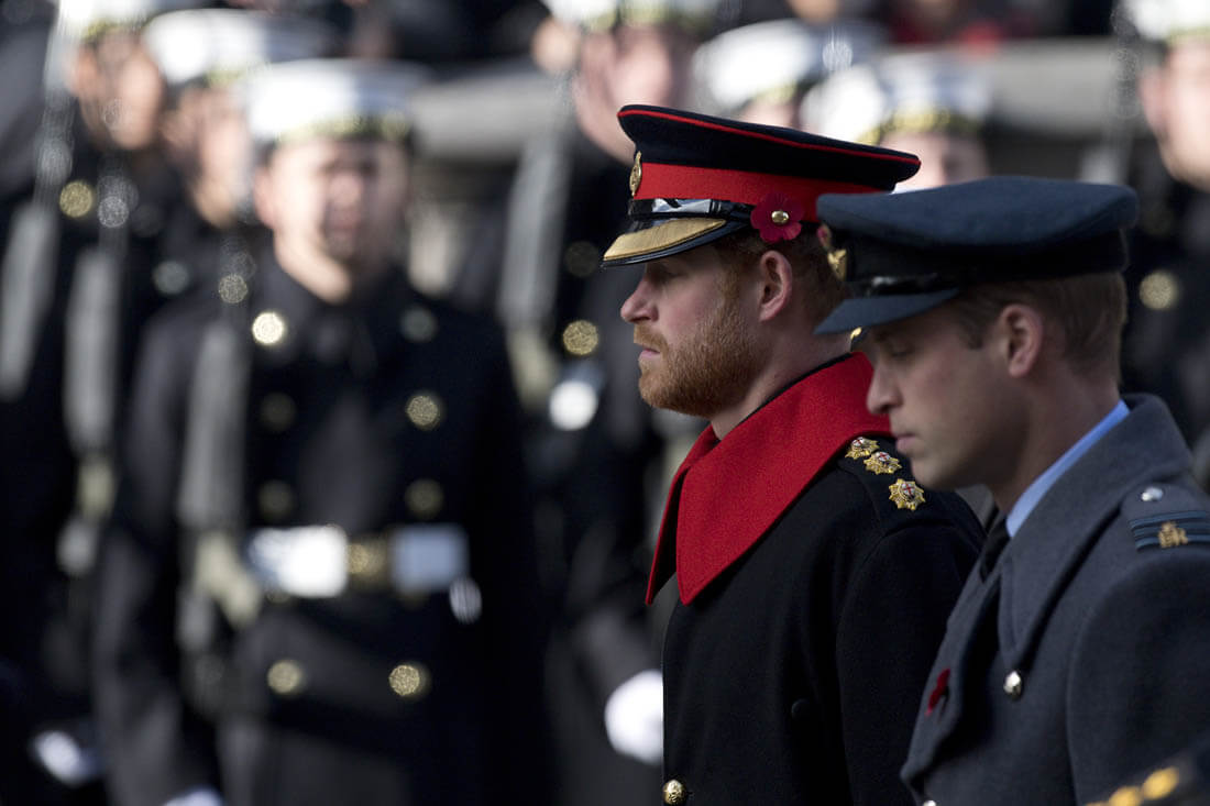 It was family duty over romance for Prince Harry this weekend. Here he is yesterday, Remembrance Sunday, with Prince William at the Cenotaph. Princess Kate was also there, joining her mother-in-law, Duchess Camilla, and Sophie, Countess of Wessex. Last night, William also attended and presented at the Evening Standard Theatre Awards.