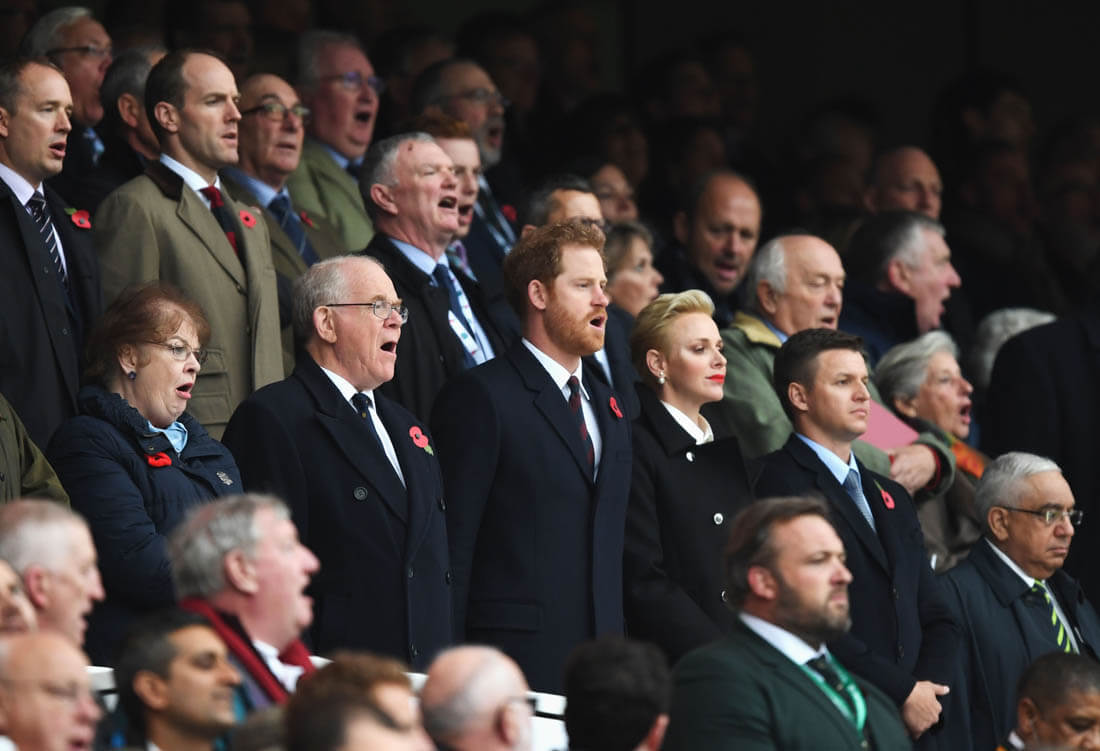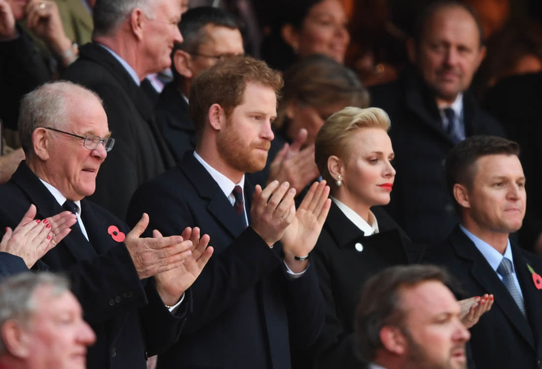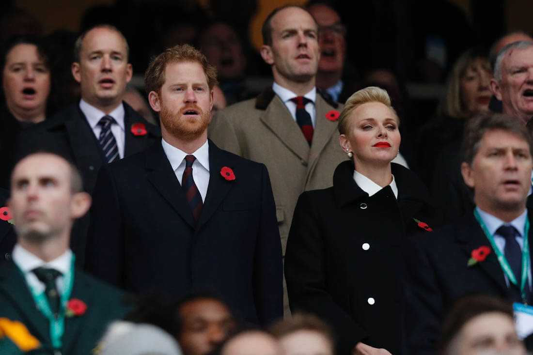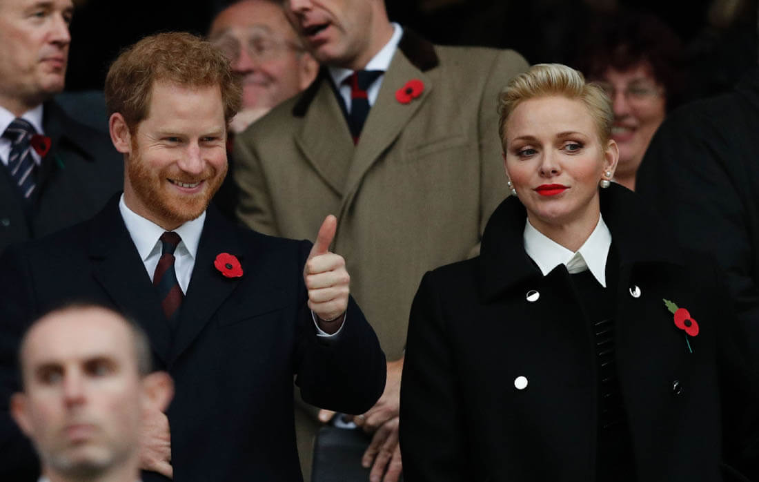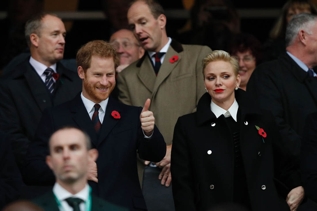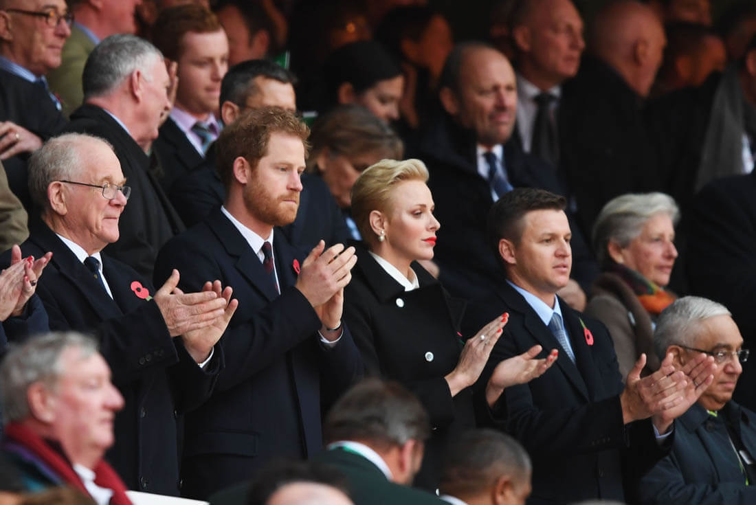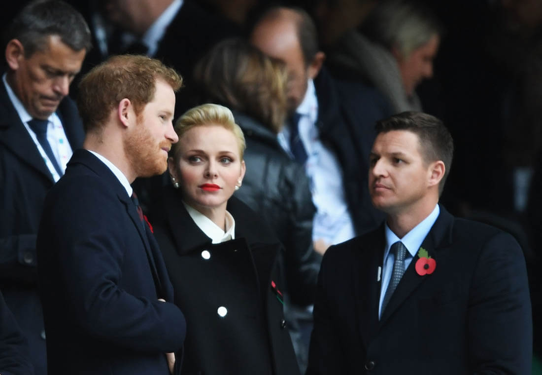 On Saturday, as expected, Harry was at the rugby match between England and South Africa. Despite hopeful speculation that Megan Markle would join him and give us the first photos of them together, she was not there as US Weekly reports that she flew back to Toronto so Harry hung out instead with Serene Charlene of Monaco. Which means we’re still waiting to see the visual manifestation of the Love Shield.