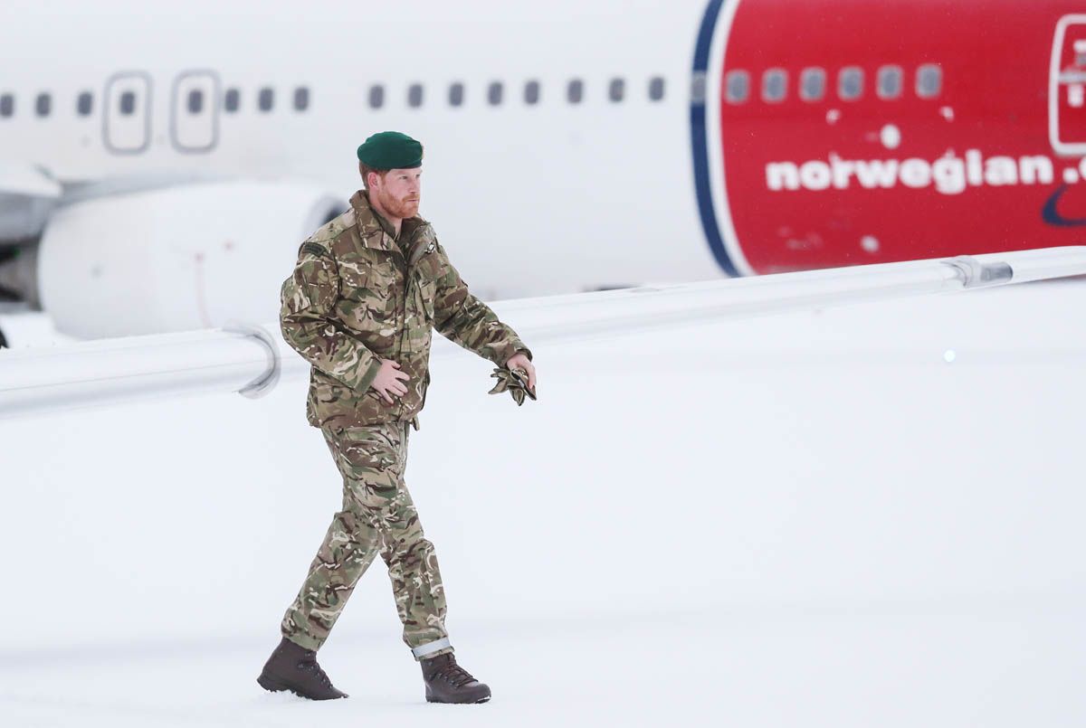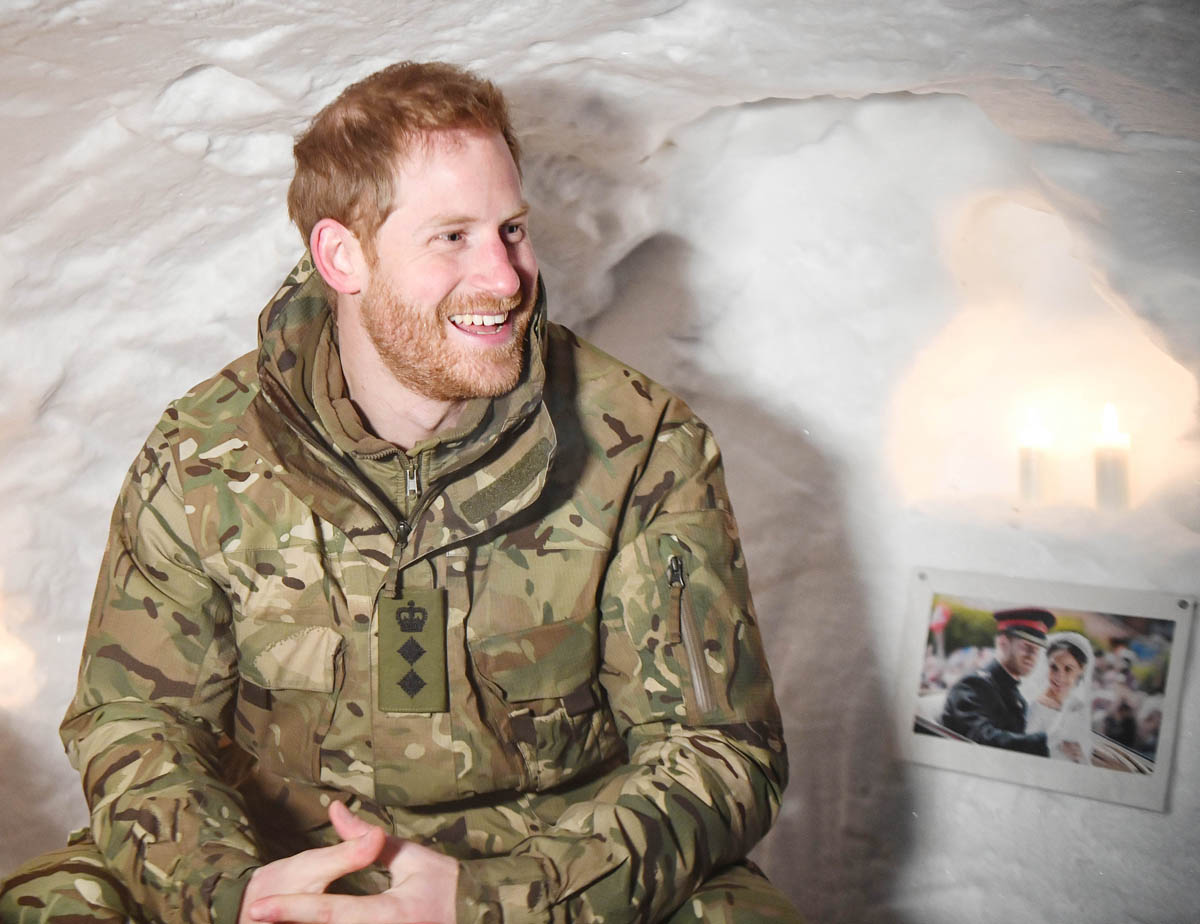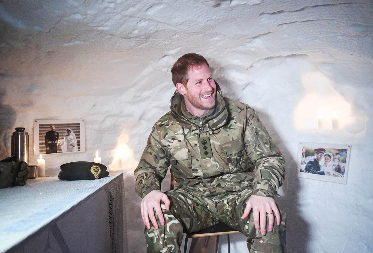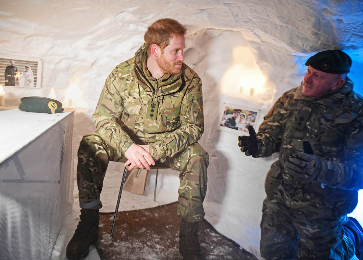 As we’ve seen in the past on these kinds of official visits, Harry likes to get right in there, is comfortable in the military environment, having served two tours himself, and interacts with service members as one of their own. There are a few shots of him in a snow shelter, sitting among photographs from his wedding day that have been attached to the ice walls, with candles lit behind him. It’s cute, the way they prepared for his visit. And reminds me of a couple of years ago, around the same time, when he took Meghan Markle to Norway to see the Northern Lights.