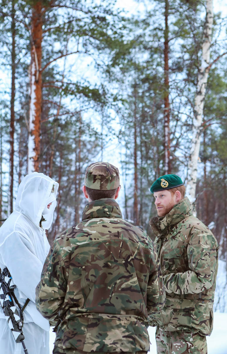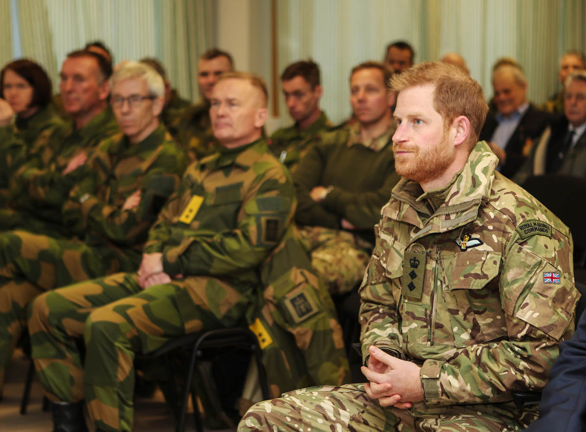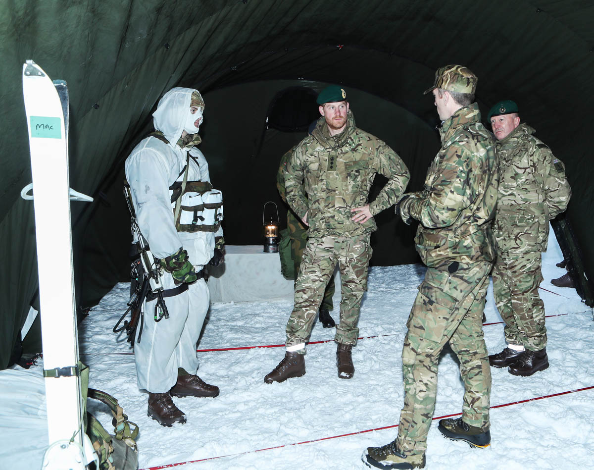 Prince Harry is in Norway today in his capacity as Captain General of the Royal Marines, spending time with service members and observing training exercises, in particular Exercise Clockwork. Participants learn how to continue with operations in extreme weather conditions and difficult terrain.