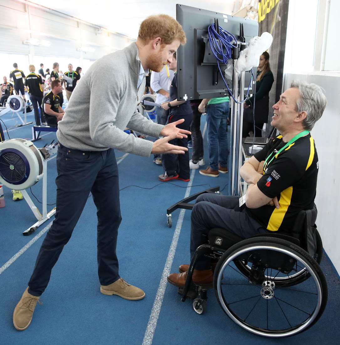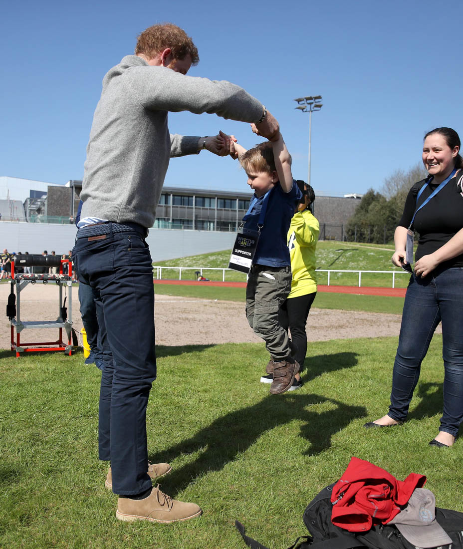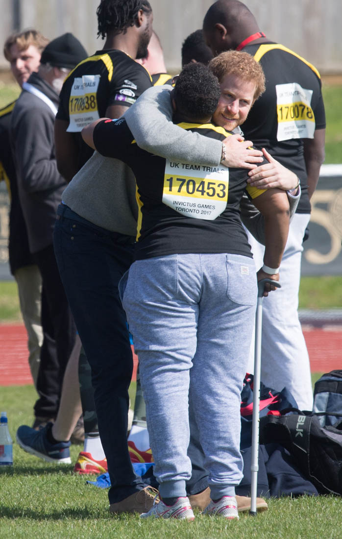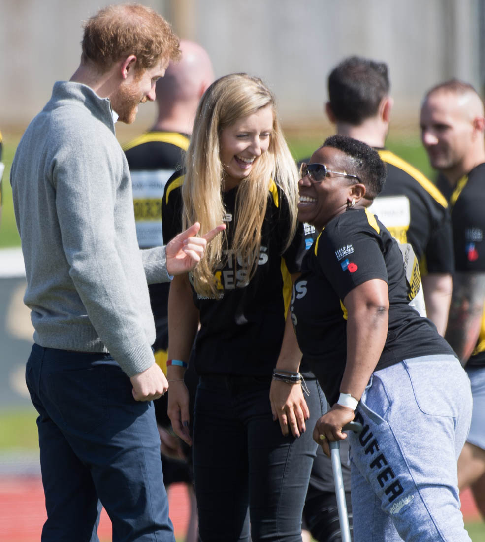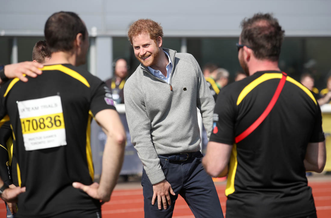 The world is f-cking bullsh-t right now. It’s been a horrifying week. It was a terrifying night. It’s too scary to look ahead. So if you need a break from being afraid, here’s Prince Harry today in Bath at the UK team trials for the Invictus Games, cheering on athletes who hope to compete in Toronto in September.