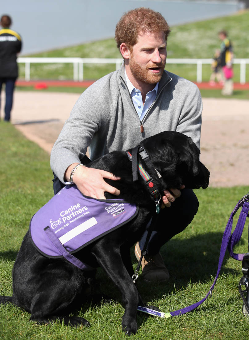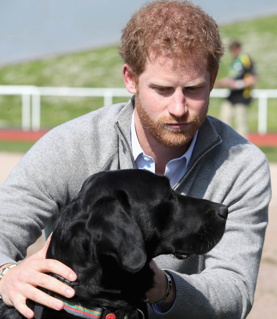 Prince Harry with babies and dogs