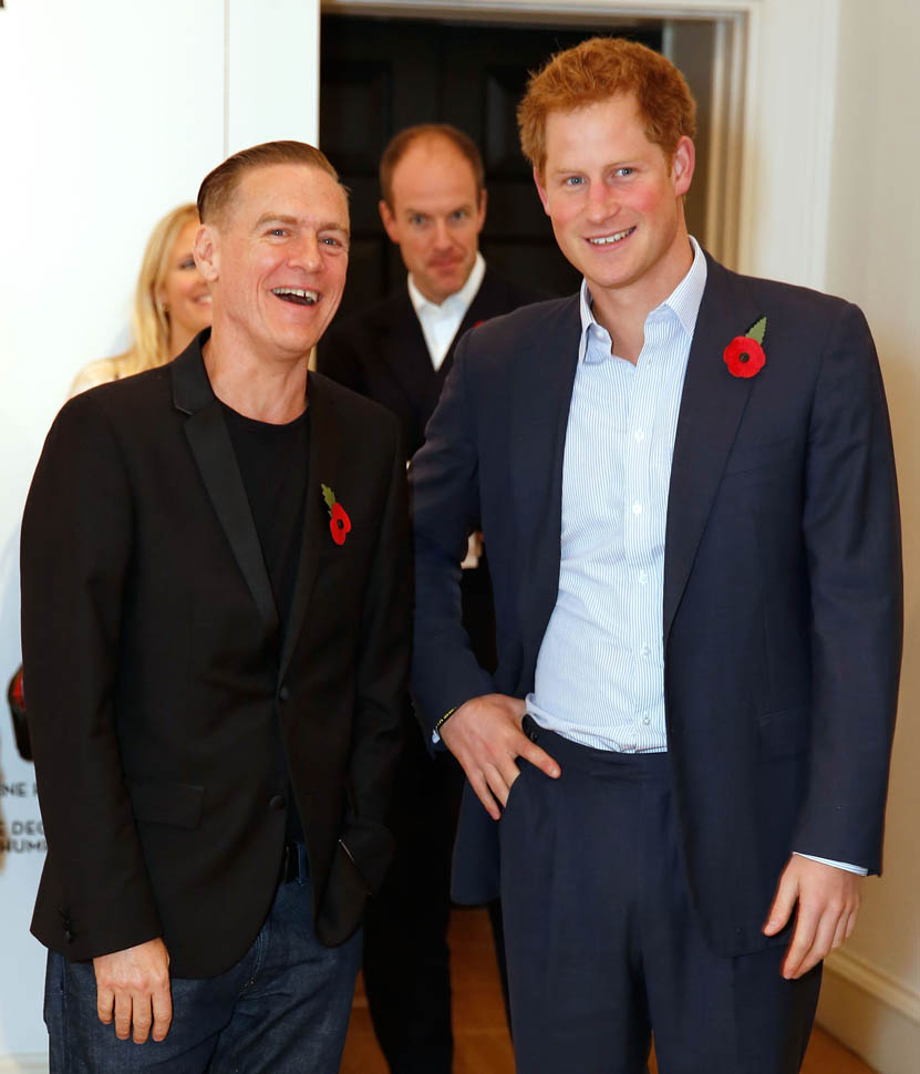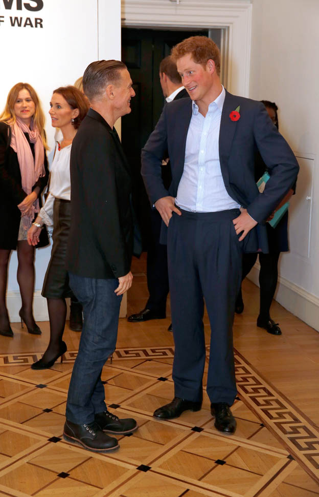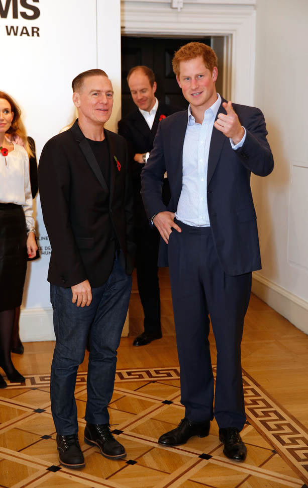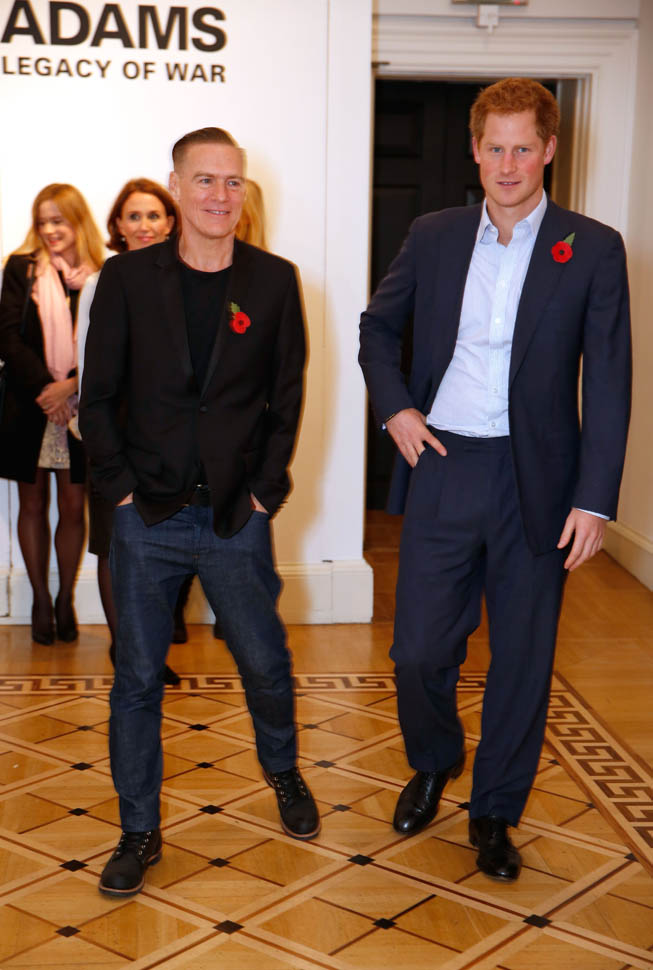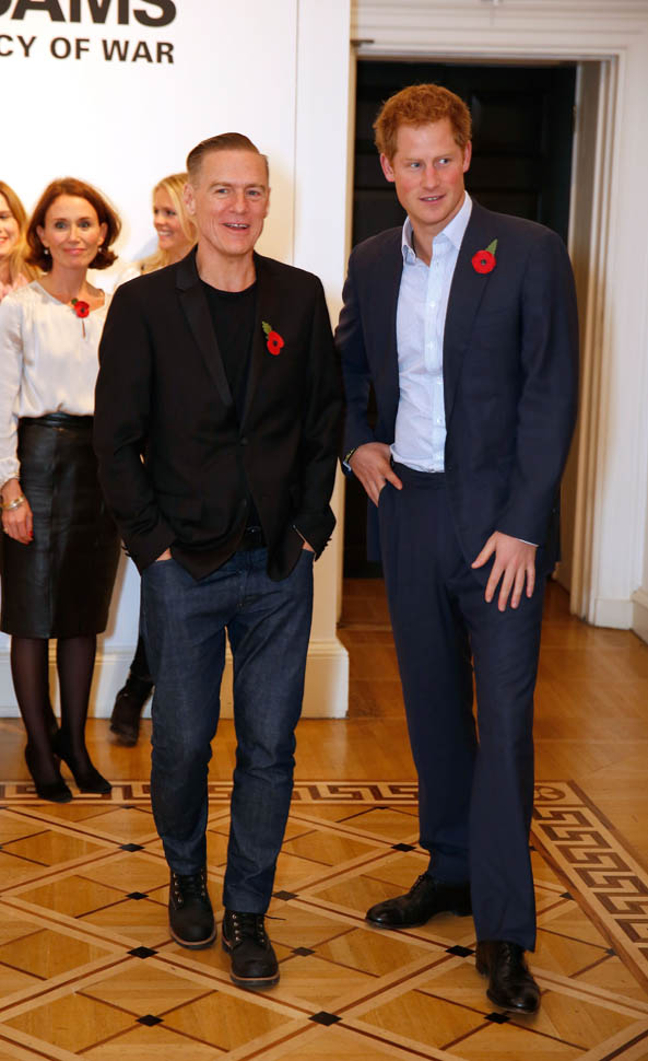 Prince Harry was out yesterday, commemorating Remembrance Day at a private viewing of Wounded: The Legacy of War photography exhibit by Bryan Adams. Young wounded servicemen and women in Iraq and Afghanistan are featured in the images. OK, royal gossips. Where did your mind go to just now? Did you remember that it’s long been rumoured that Princess Diana and Bryan Adams had a thing? For the record, I’ve never believed it. But they were friends, definitely friends. Just friends. Like she was friends with Elton John.