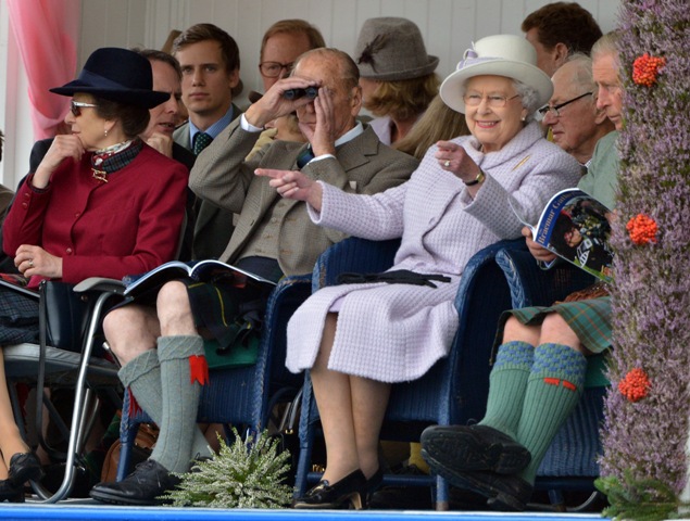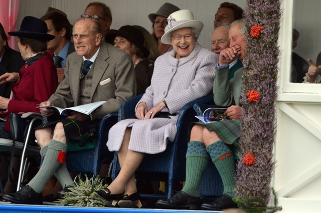 What does his grandfather call it? Check out these hilarious photos of the Queen, Prince Philip, and Prince Charles at the Braemar Games the other day in Scotland. First of all, I love seeing old granny laughing! Look at her! It’s almost a giggle! Anyway, as you can see, the Duke of Edinburgh is wearing a kilt. And nothing underneath. And, well, he forgot that there are photographers at every angle. Gossip Cop spotted it first and I’ve been debating on whether or not to buy the picture and zoom in there to see (in the low resolution shot, Jacek says there’s something “shining” between his legs) but, um, that’s little bit offside, isn’t it?