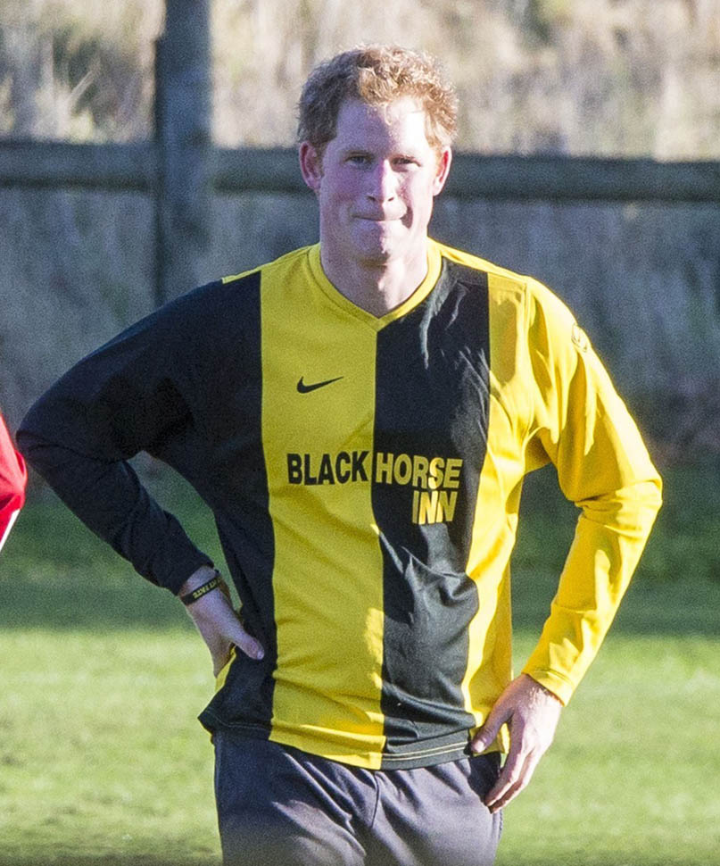 Prince Harry participated in a charity football game today at Sandringham where the Queen and the royal family gather for Christmas every year. He’s animated and sweaty and flushed and contorts his body in various positions and…well…