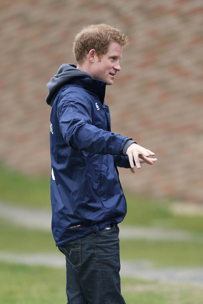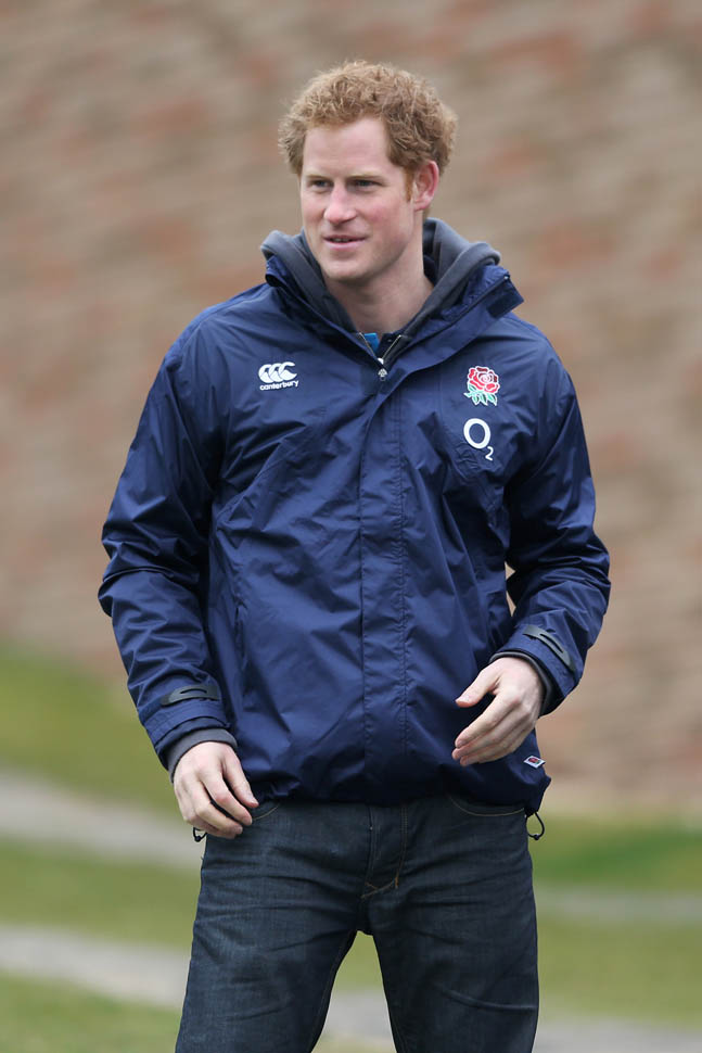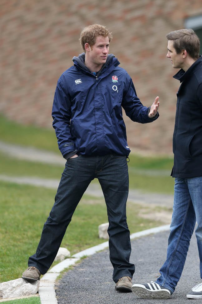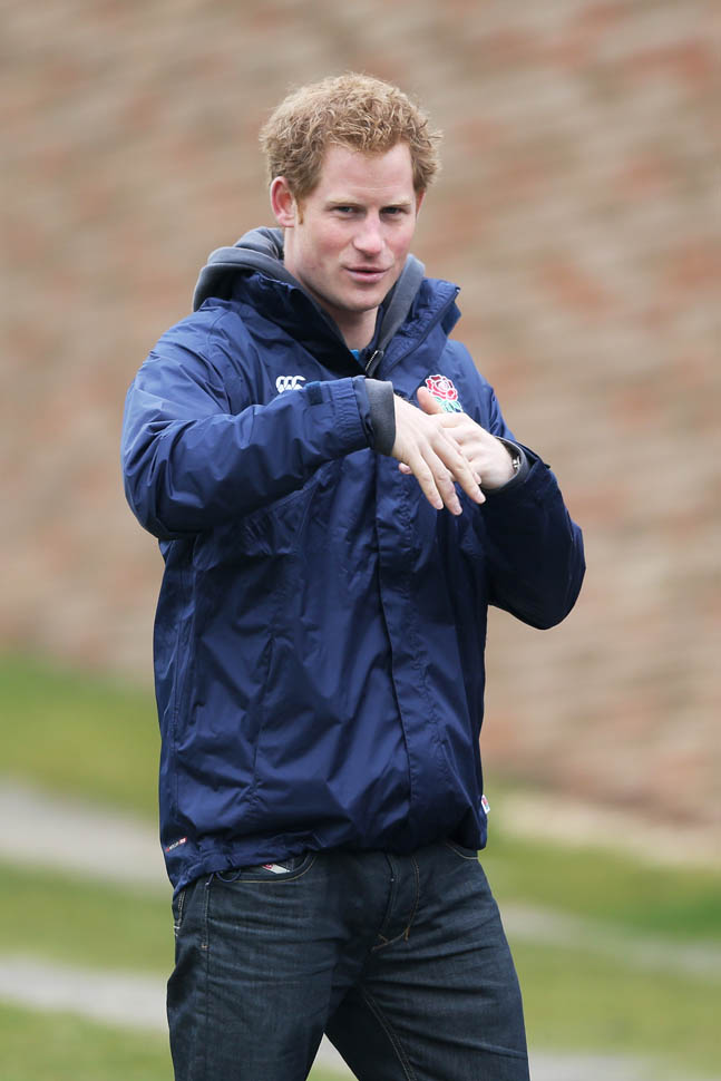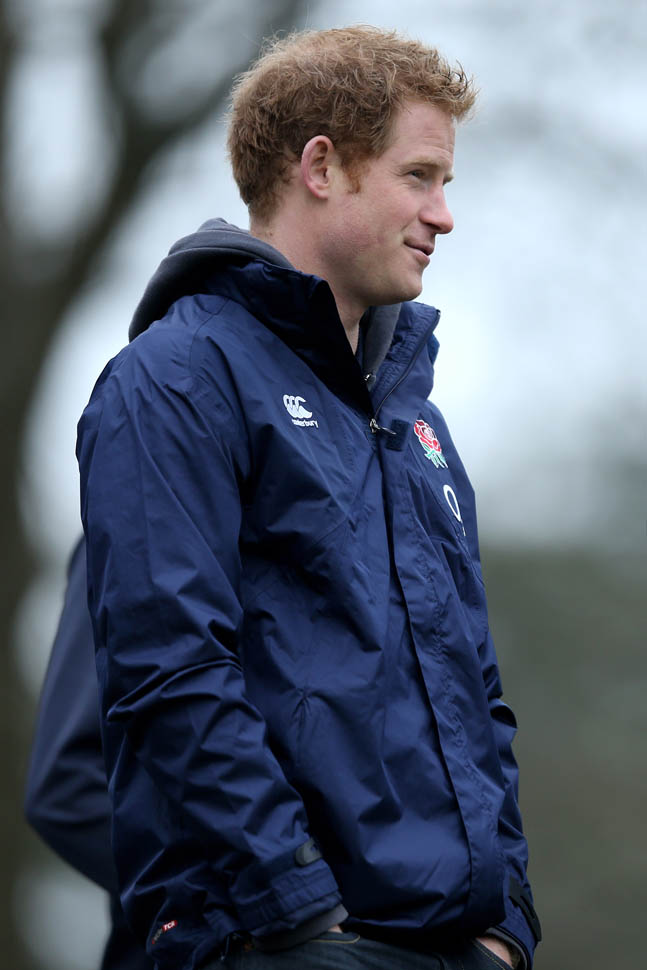 Here’s Harry at the English rugby squad training session yesterday in Bagshot, England. I LOVE him in a hoodie.