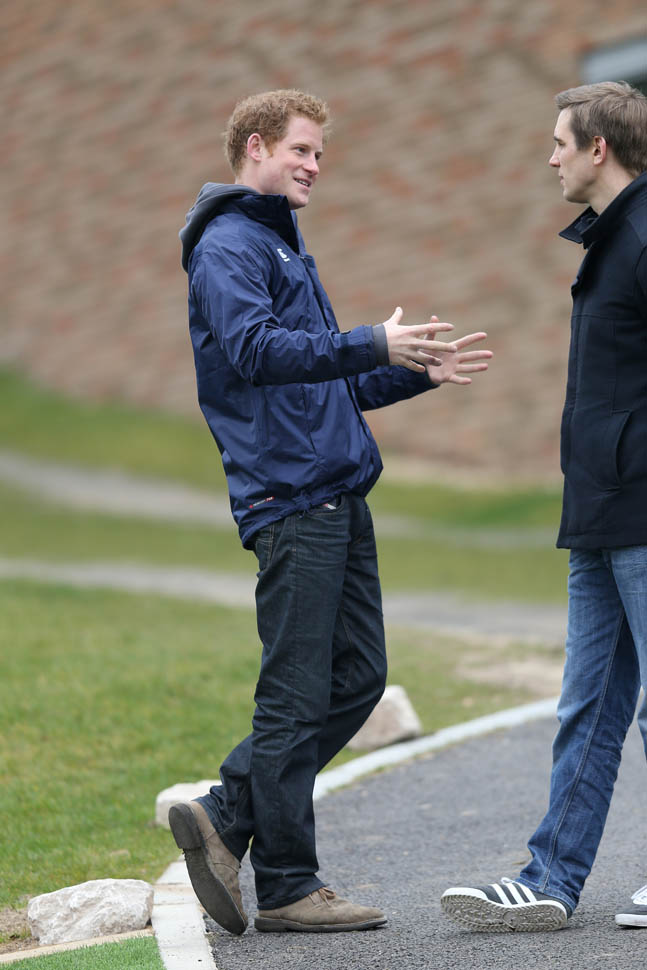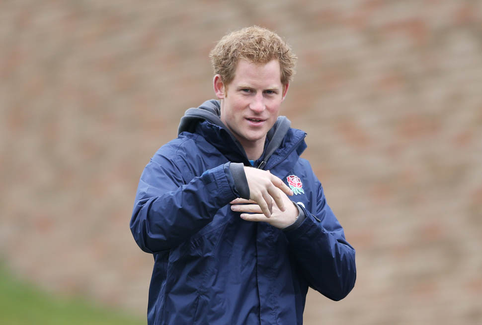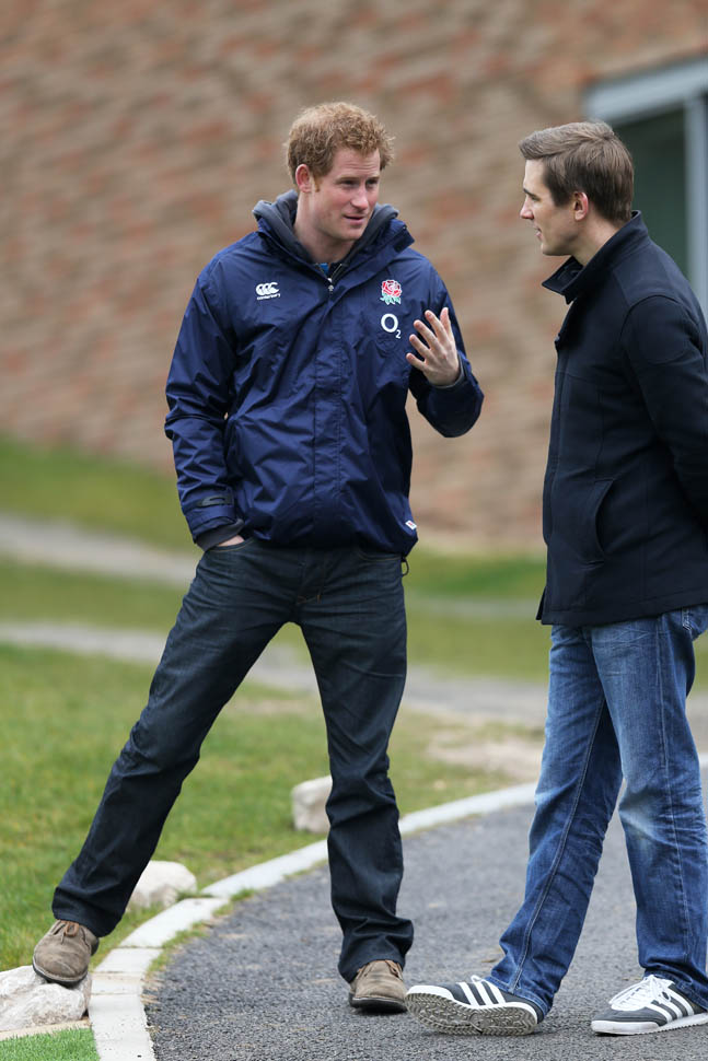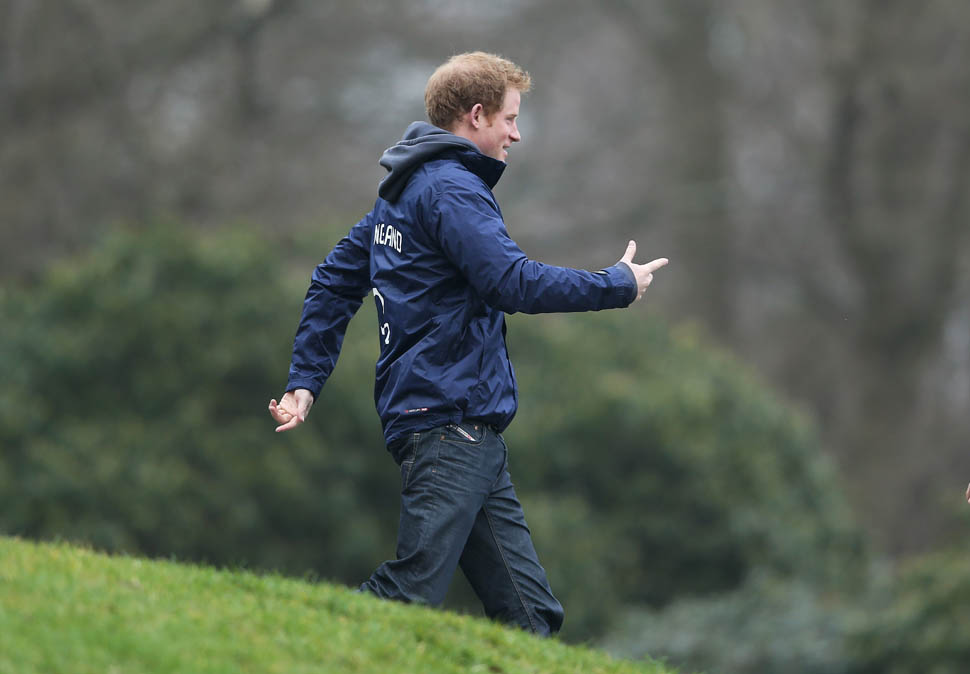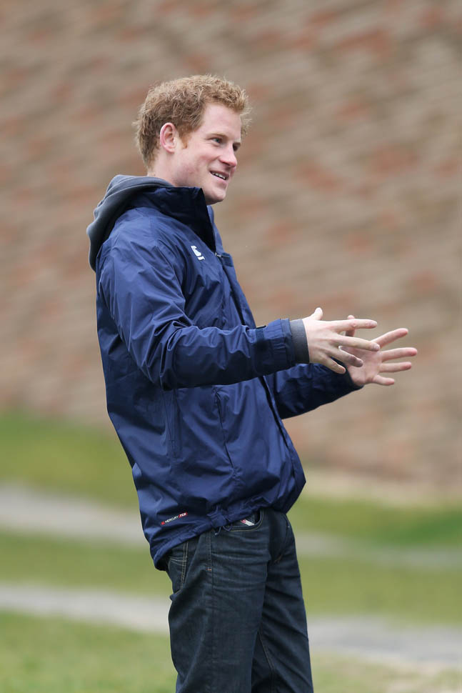 Here’s Harry at the English rugby squad training session yesterday in Bagshot, England. I LOVE him in a hoodie.
