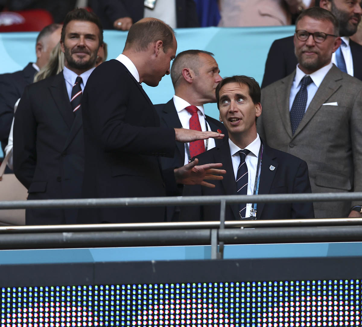 Back to the celebrities though, of course Prince William was there, both as a fan and the president of the Football Association, and he seen talking at points to the Interim Chair of the FA and the head of EUFA and just a few seats away from Boris Johnson. Also in the royal box – David Beckham, this time without any family members but his friend Guy Ritchie instead. Can’t imagine that William or David will be missing the final on Sunday at Wembley. Both will likely be back.