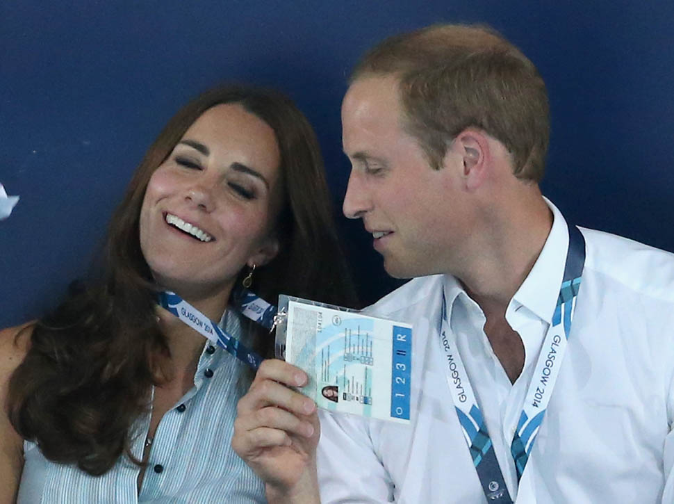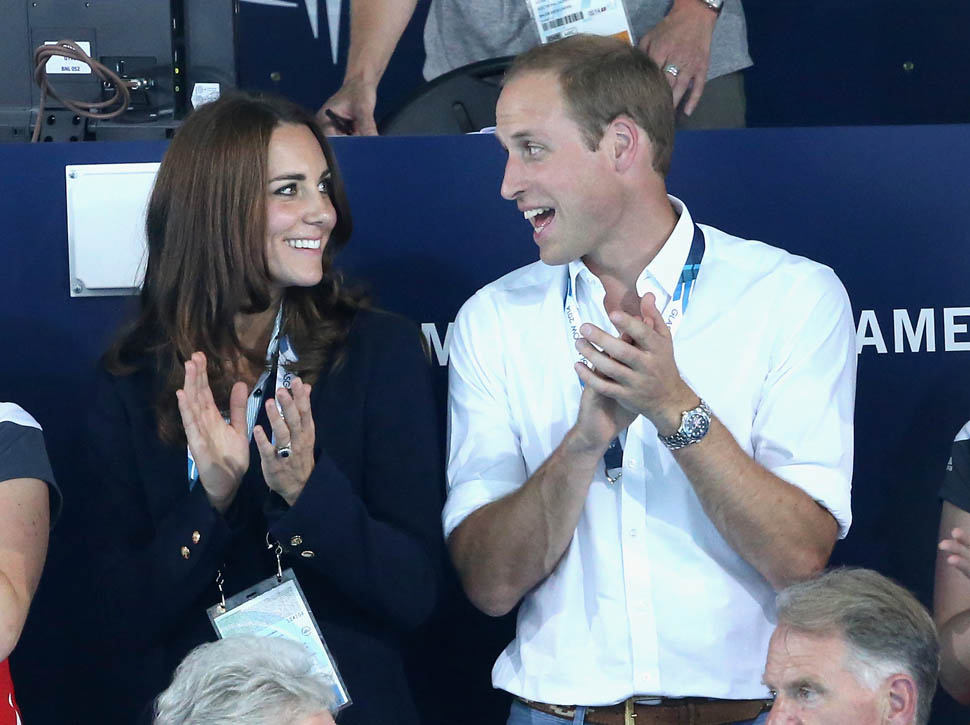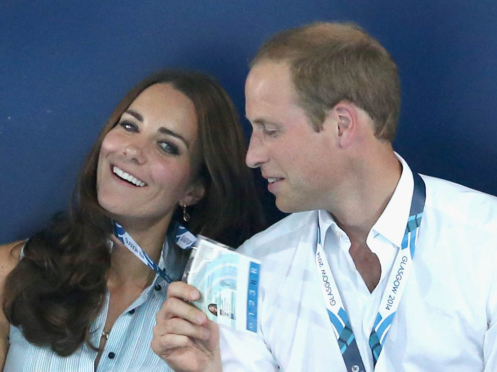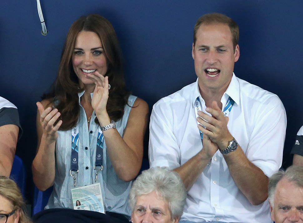 Something happens to Will and Kate when they’re at sporting events. First of all, she’s glowing, especially in those shots of her from the swim meet. Maybe it’s because he’s touching her. Or maybe that’s why he’s touching her, pulling on her lanyard, holding her hand while her hand is on his thigh. Or…maybe they’re enjoying their time away from getting stomped on by their son, the giant destroyer of House Windsor.