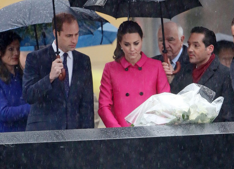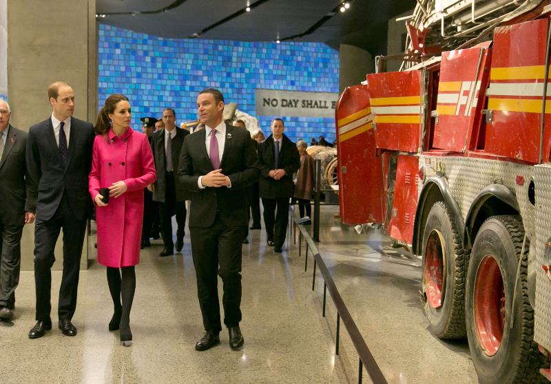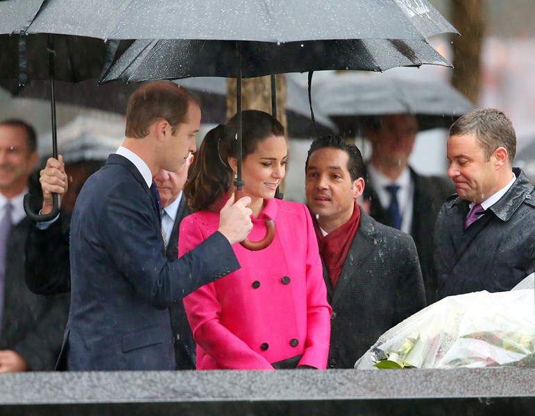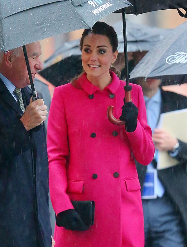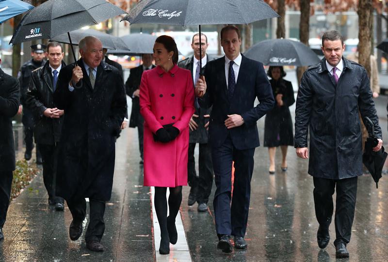 The Cambridges visited the 9/11 memorial today in New York. They lay flowers in memory of the victims. There’s been some talk about this colour choice. Pink.