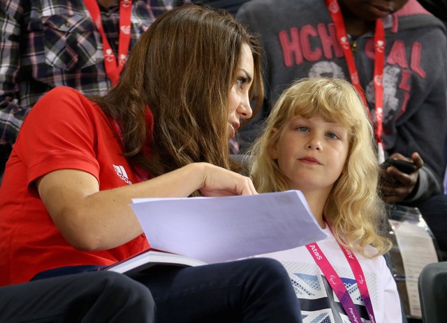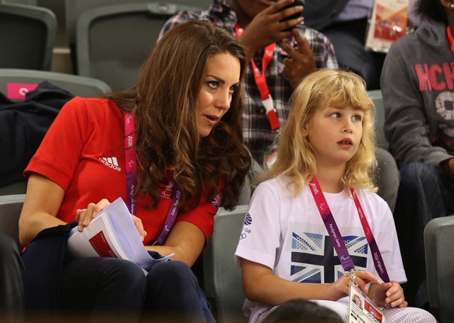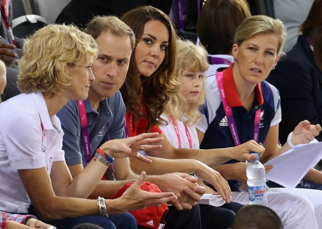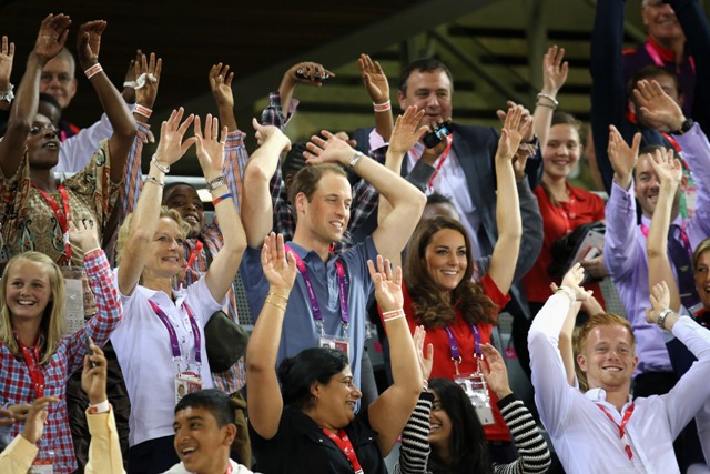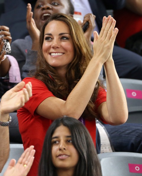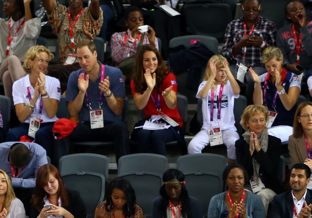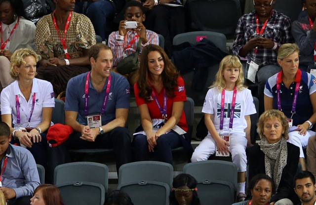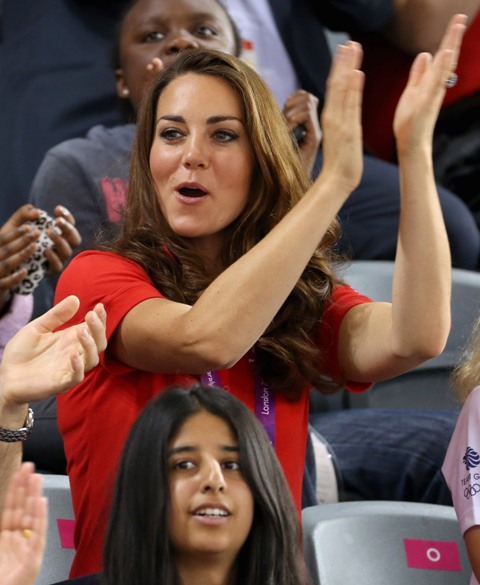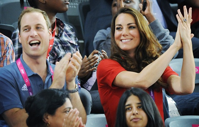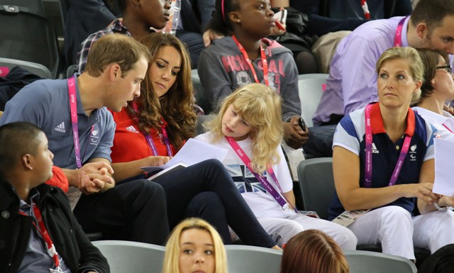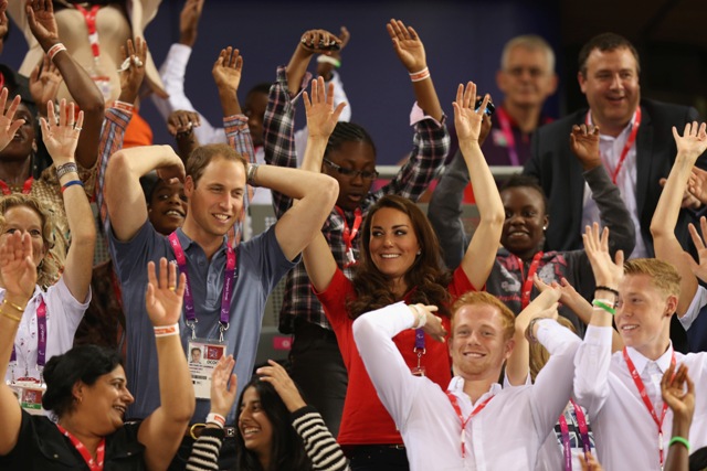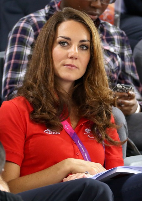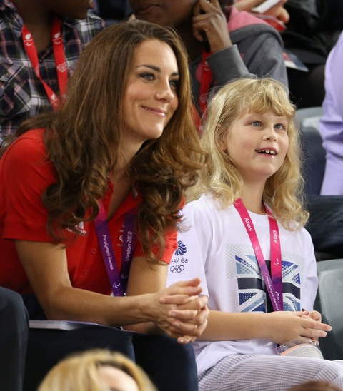 Prince William and his Catherine were at the Opening Ceremony for the Paralympics last night. Click here if you missed those pictures. They were back out today for Goalball (this sh-t is CRAZY and you should try and get a game in if you can) and at the velodrome for track cycling. As you can see, Kate had her English colours on, and an extra huge smile, and they did the wave, and they were sweet with little cousin Louise, as if to say....
