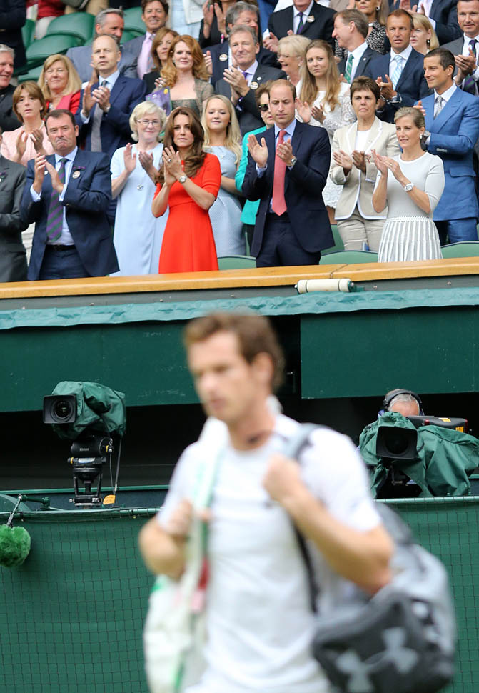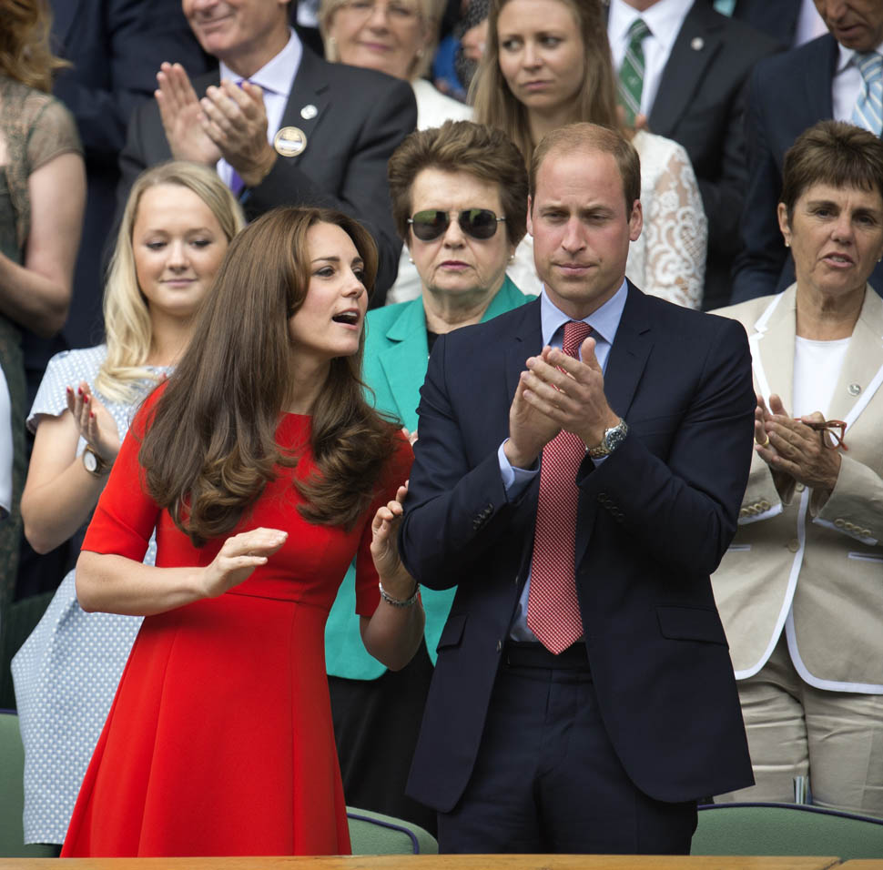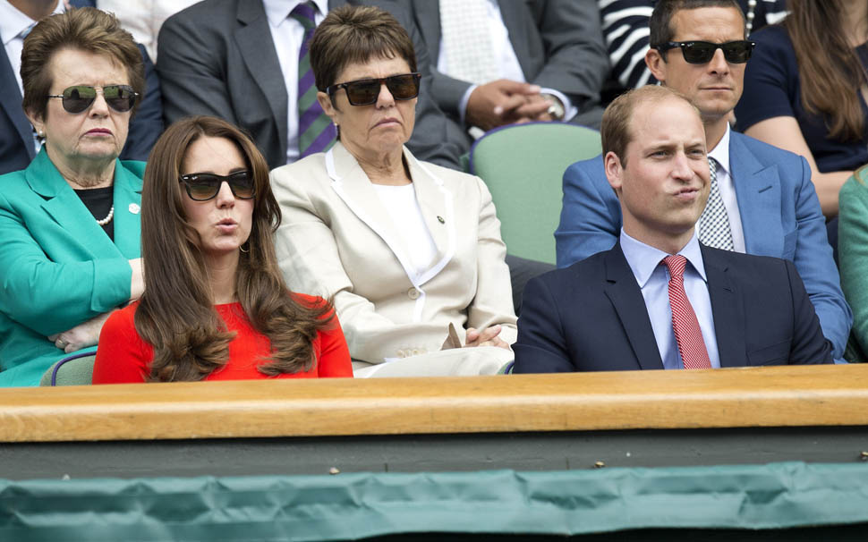 Anyway, it ended in straight sets, in favour of Murray who’s now on to the semis despite looking like he might have a sore arm. This, no doubt, was the result that Will and Kate were hoping for. As you can see, they put on a good show for the crowd, smiling and laughing at each other, seemingly enjoying their time away from the 24 hour attention that Big G demands. You think he sleeps in his own bed? Or does he sleep in their bed, on his back, arms and legs splayed, and insist they hack in the guest room?