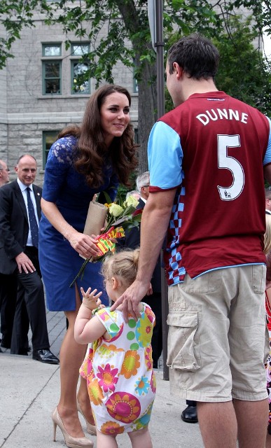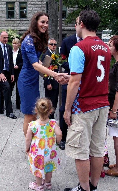 The collar, front and back, on the grey shift is lovely though. As is the way, again, Prince William is not afraid of tactility when it comes to both his wife and his admirers, even if they are tattooed all over and homeless. Kate wore blue lace Erdem for that occasion in Quebec City and I have never been more in love with them both. Having worked with street youth myself for several years through Covenant House Vancouver you cannot imagine what encouragement meeting the Prince and his wife would have been for these kids. If you are cynical, you will say that these two are great at playing public relations. I won’t argue with you there. But whatever their objective, it’s hard to argue with the fact that these are young people who often feel invisible, ignored, and without value. And the most famous couple in the world hung out with them, laughed with them, shook their hands, made eye contact with them – this would have meant something. So while you may discount the motivation, it would be more difficult to take away from the effect, intended or otherwise.