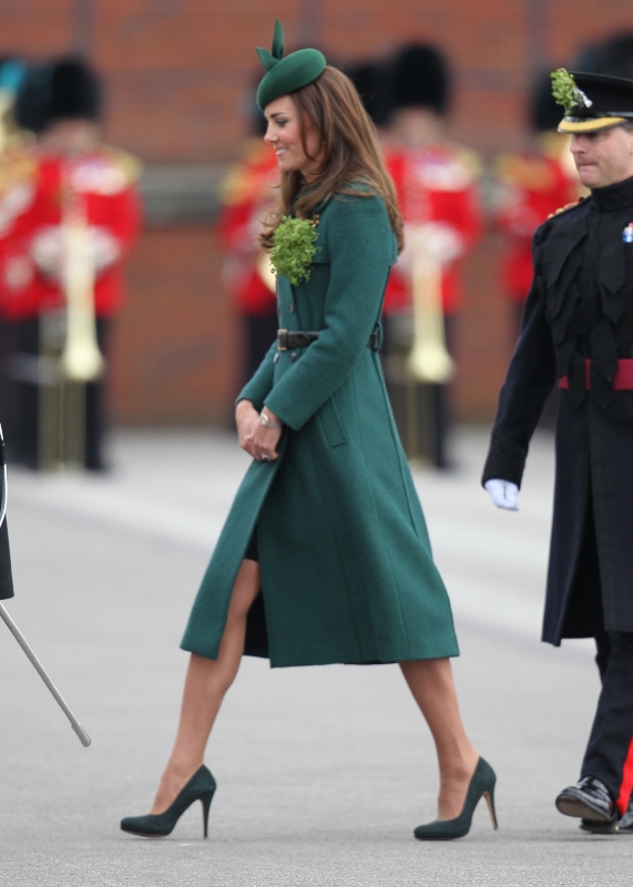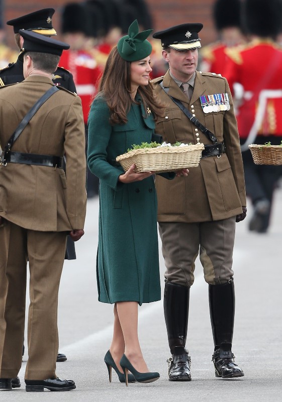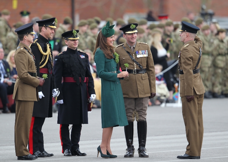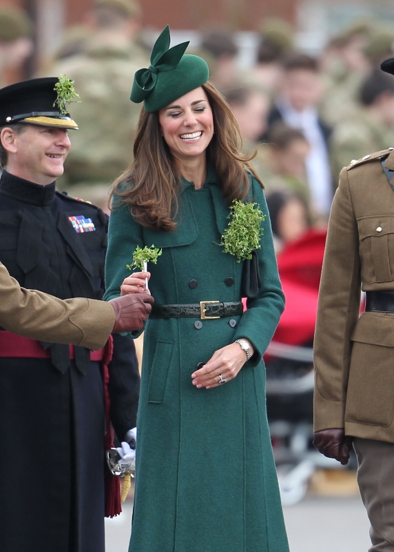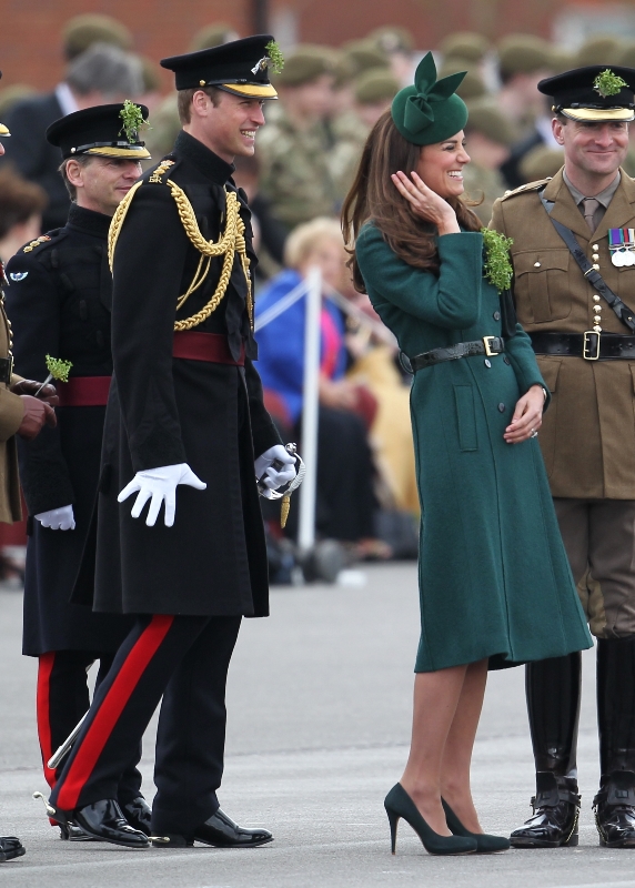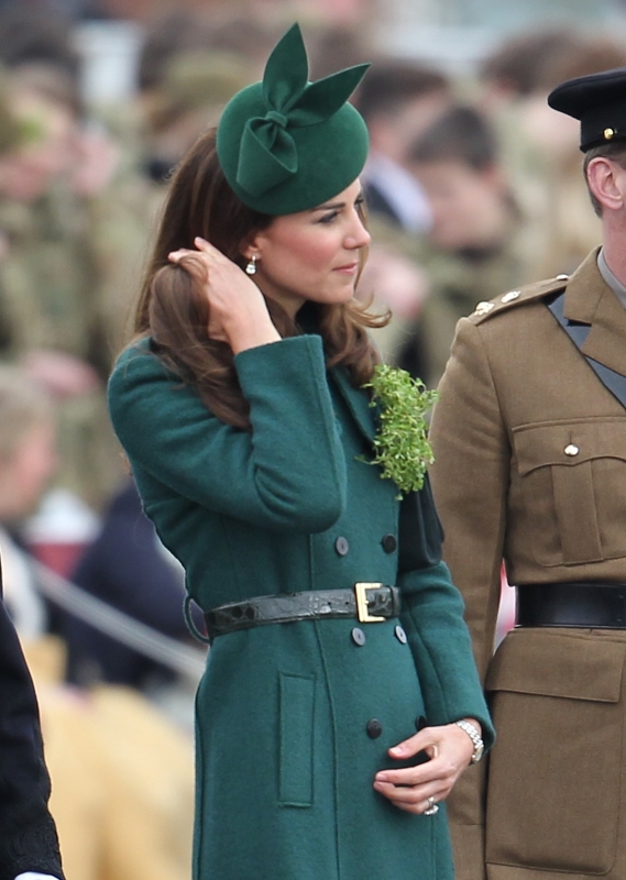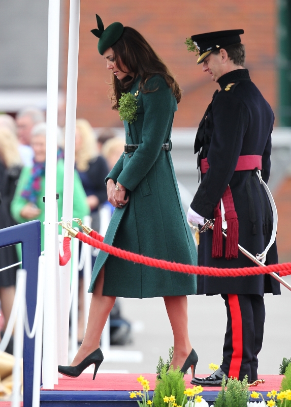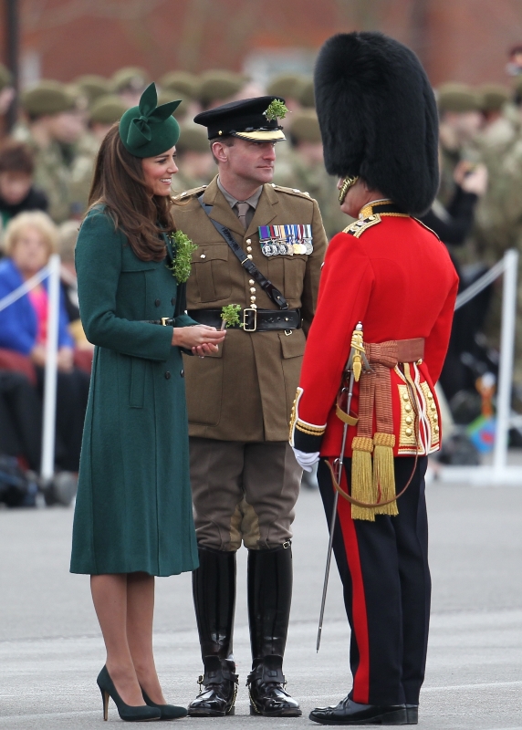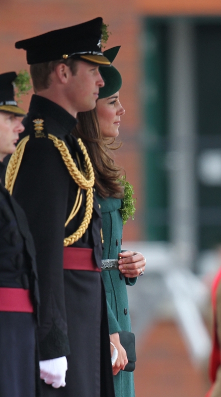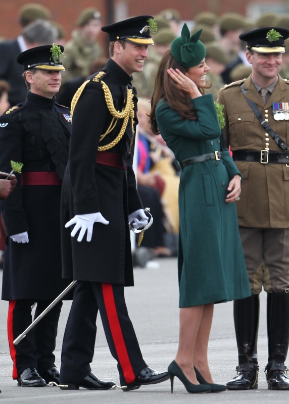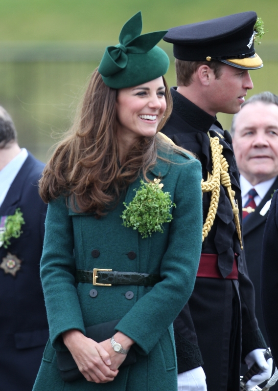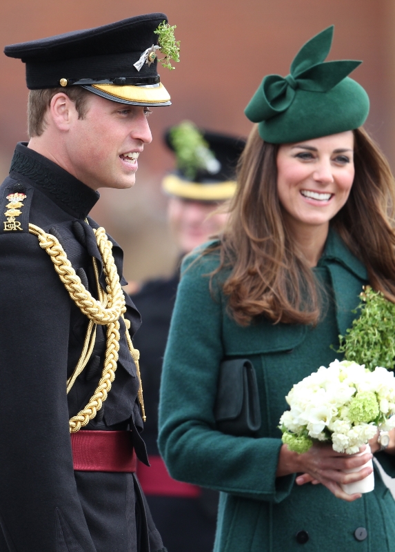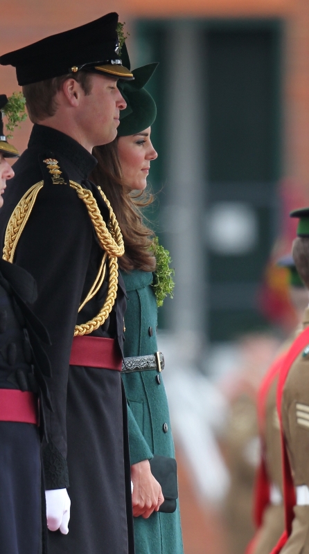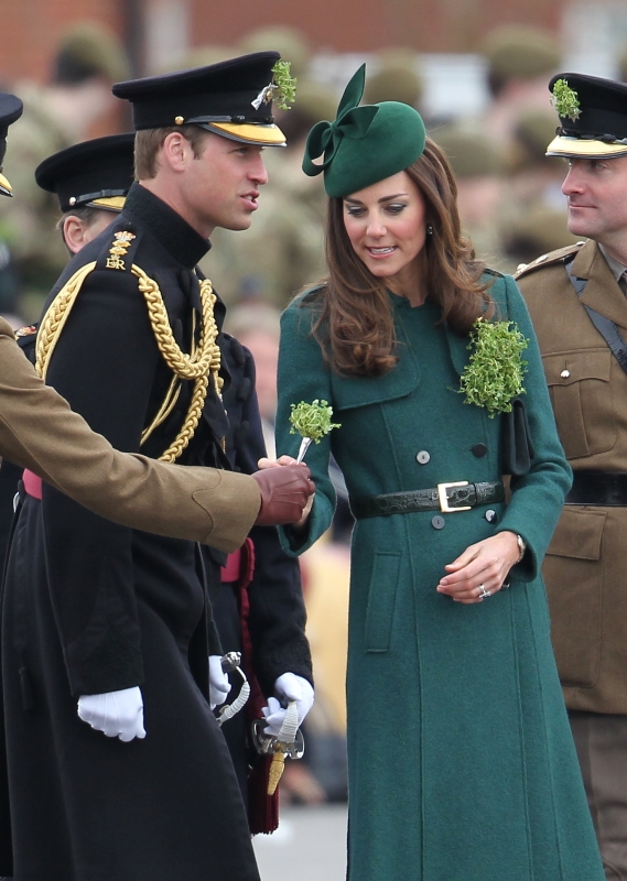 That’s not how the royals do it though. Check out Prince William and his Catherine at the parade of the Irish Guards today. She presented shamrock sprigs to the officers in a green coat and matching hat. You know how I feel about a green hat. Green hats in Chinese culture are the sign of the cuckold. Green hats in Irish culture mean something totally different. Is that an exception? I tried to ask my ma, the Chinese Squawking Chicken, about this yesterday and her only response was, “You’re not Irish”. Helpful.