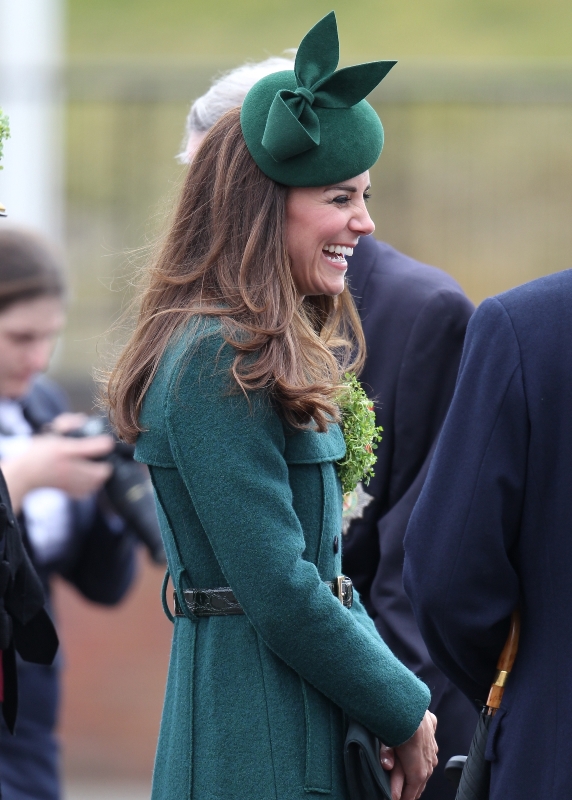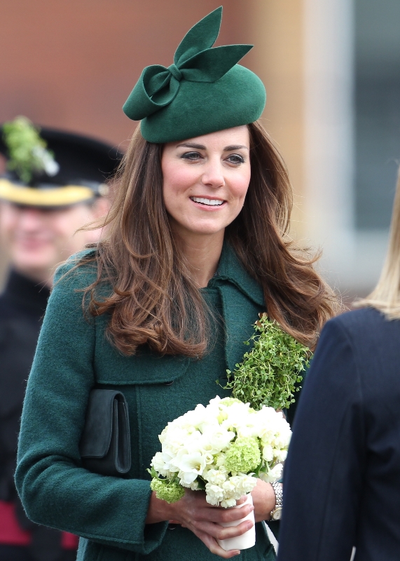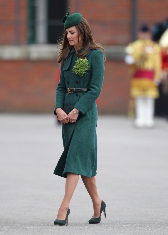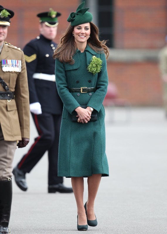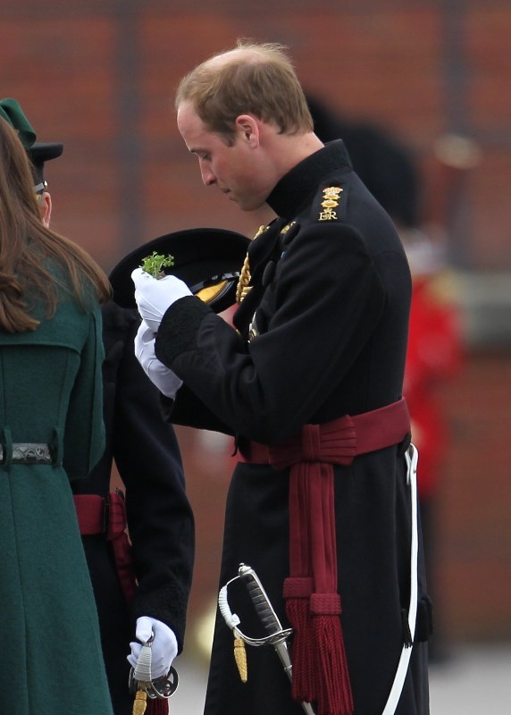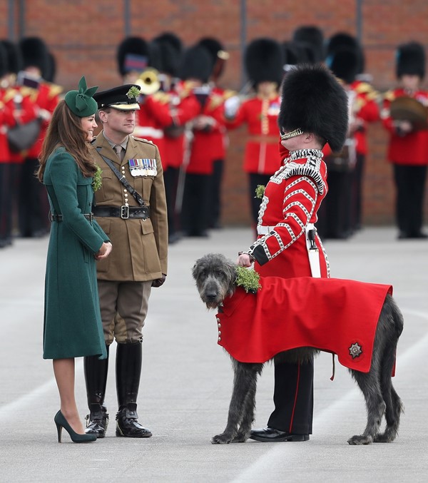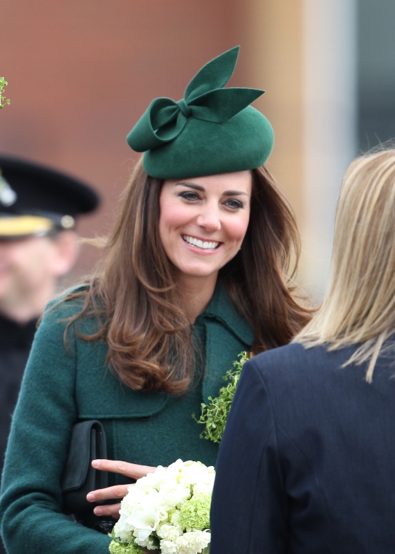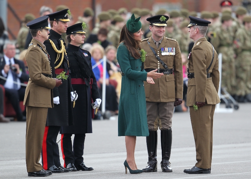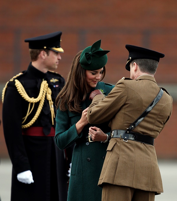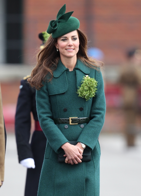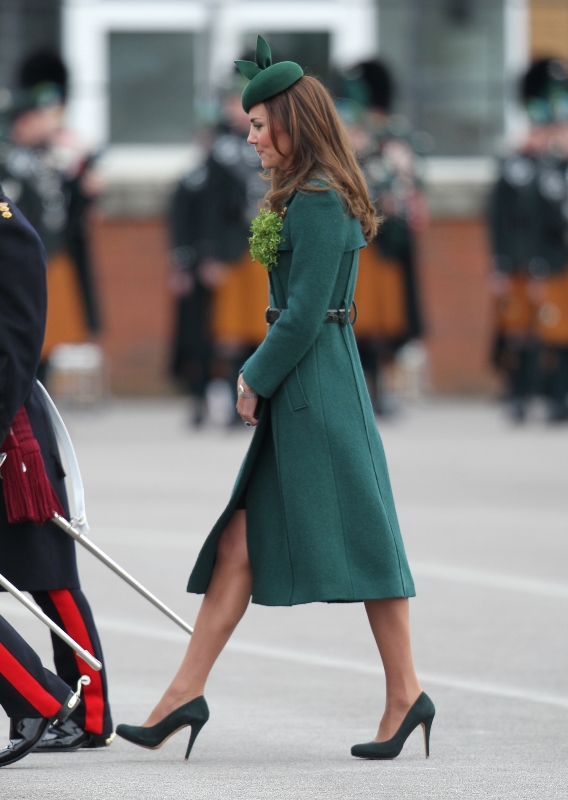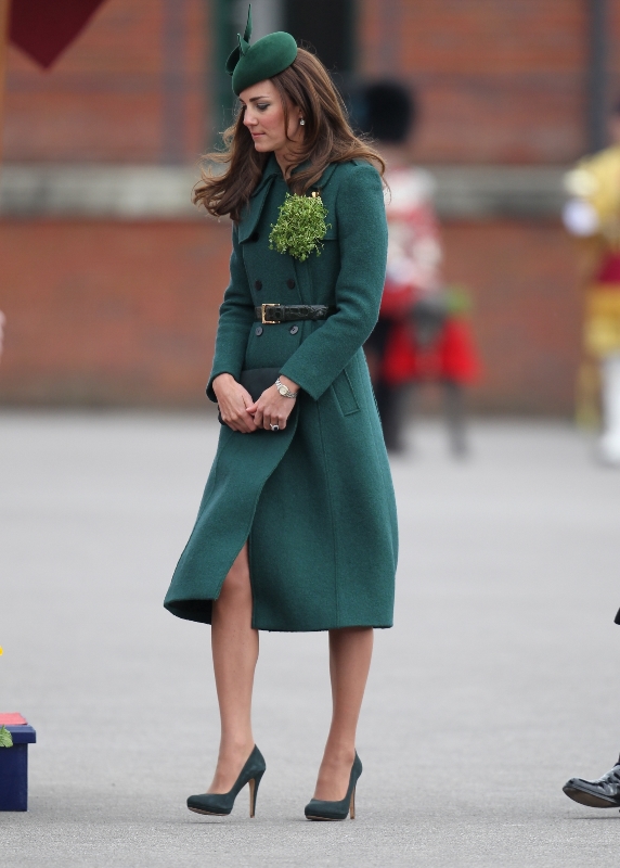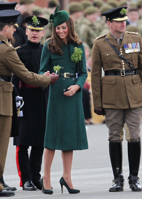 That’s not how the royals do it though. Check out Prince William and his Catherine at the parade of the Irish Guards today. She presented shamrock sprigs to the officers in a green coat and matching hat. You know how I feel about a green hat. Green hats in Chinese culture are the sign of the cuckold. Green hats in Irish culture mean something totally different. Is that an exception? I tried to ask my ma, the Chinese Squawking Chicken, about this yesterday and her only response was, “You’re not Irish”. Helpful.