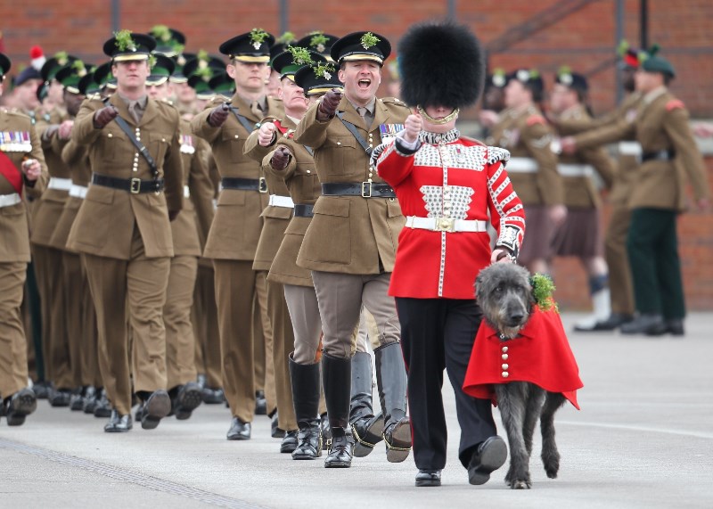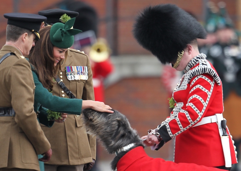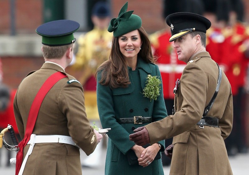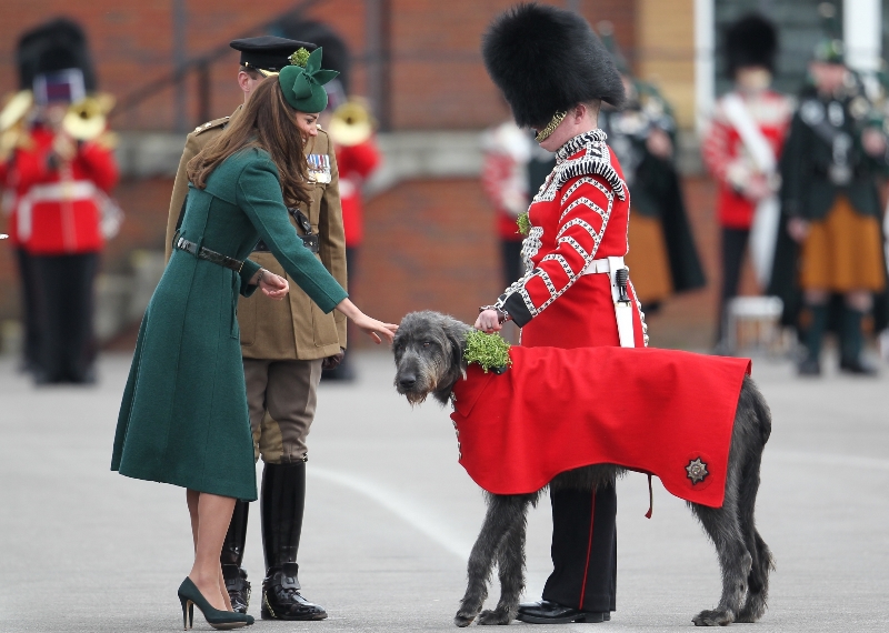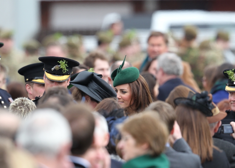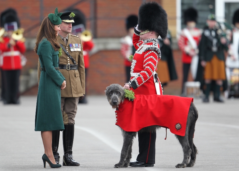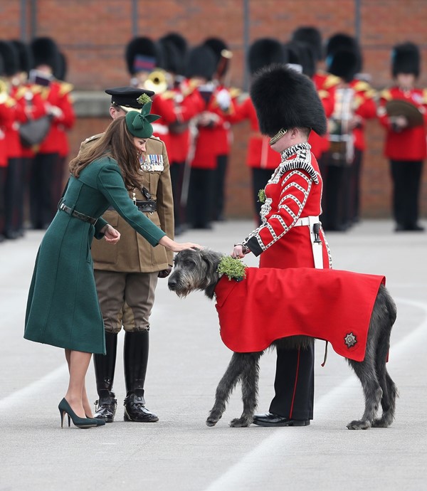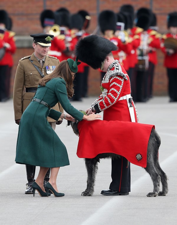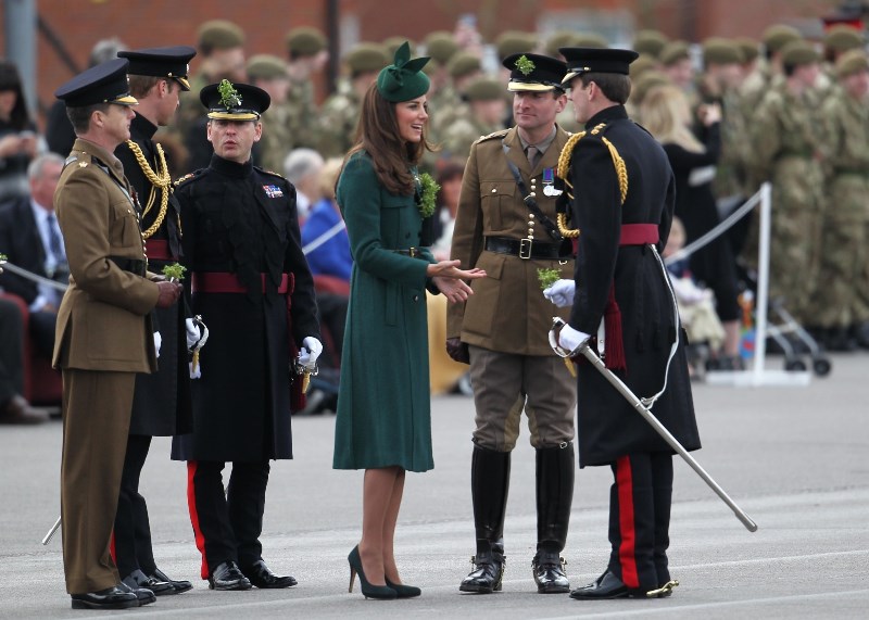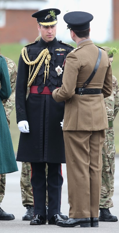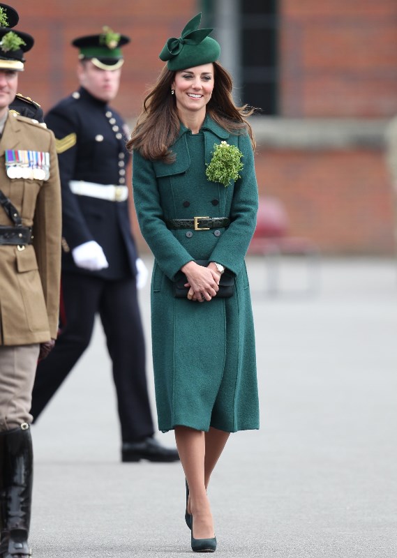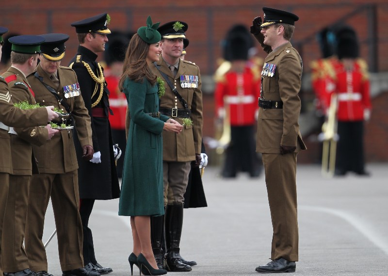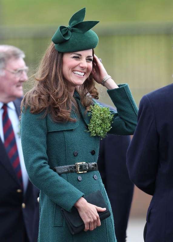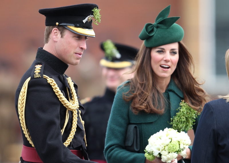 That’s not how the royals do it though. Check out Prince William and his Catherine at the parade of the Irish Guards today. She presented shamrock sprigs to the officers in a green coat and matching hat. You know how I feel about a green hat. Green hats in Chinese culture are the sign of the cuckold. Green hats in Irish culture mean something totally different. Is that an exception? I tried to ask my ma, the Chinese Squawking Chicken, about this yesterday and her only response was, “You’re not Irish”. Helpful.