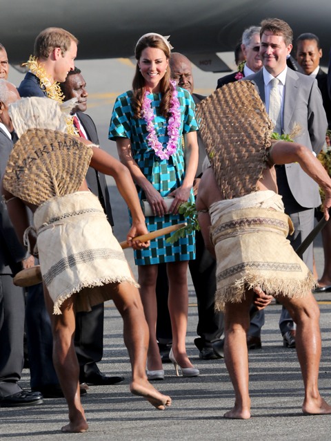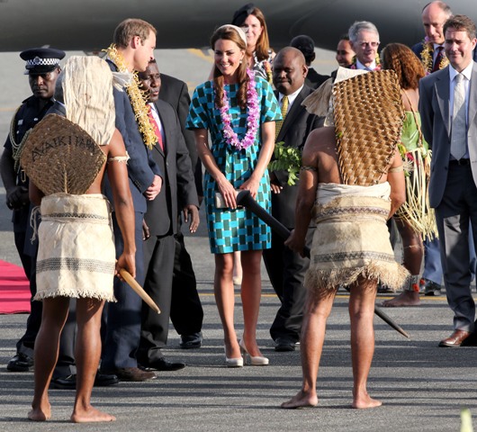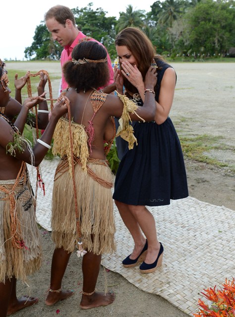 I’m not smart enough to make a clever comment about the irony (is it?) of them being greeted by topless locals as they’re involved in their own topless drama back in Europe but here they are, the Cambridges, touring the Solomon Islands, looking unbothered by the fact that several other magazines are about to publish more shots of them on holiday a couple of weeks ago when Kate was sunbathing in bare breasts.
