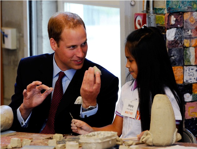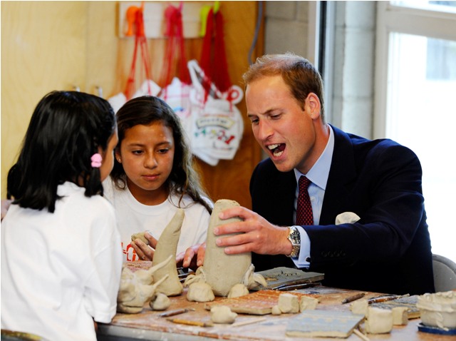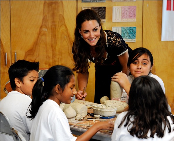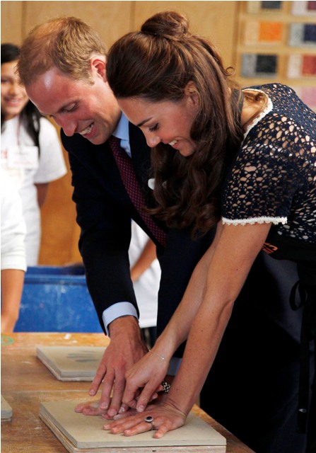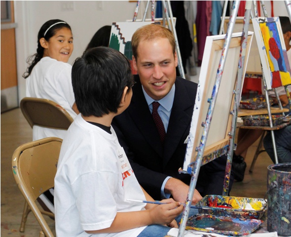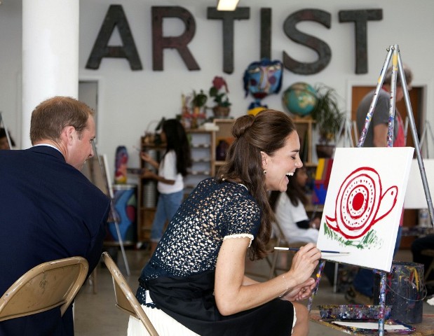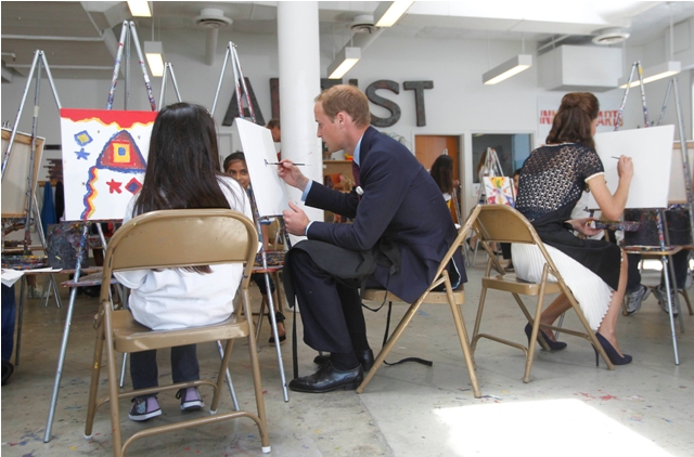 Before leaving yesterday, they visited Inner-City Arts which serves disadvantaged youth in the poorest neighbourhoods. Will and Kate painted, or, rather, Will tried to paint, and they left their hand imprints, and they were sweet with the kids and really cute with each other.