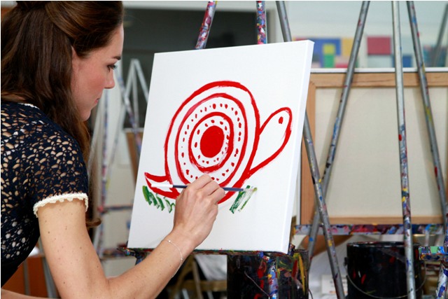 Apparently he didn’t know what to do while they were seated at the easels and she asked him, “William, do you know what you're doing? Start from the center." Which... he clearly didn’t understand because later on he ended up saying to her, "Catherine, what are you supposed to do?" and then she threw her head back and laughed and repeated the instruction. He also teased her when her hand print ended up really faint. And then they touched hands and pressed down together. I also really love the pictures of him looking at her, and her trying not to laugh.
