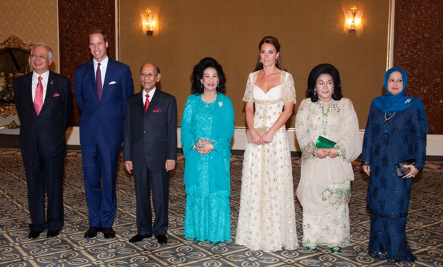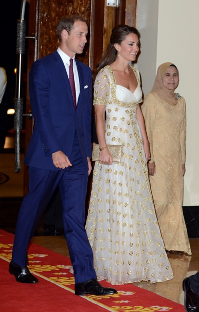 After that Will and Kate changed into formals for dinner with the King and Queen of Malaysia. The dress is McQueen and it’s embroidered with hibiscus flowers honouring their country. Certainly not my flavour but I get it that at these kinds of events you can’t always go with the most stylish option.
