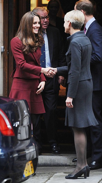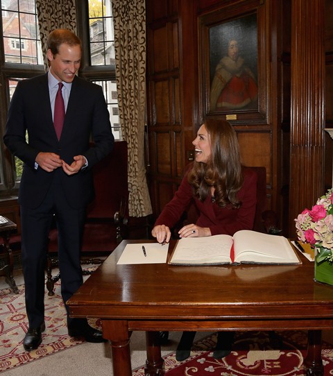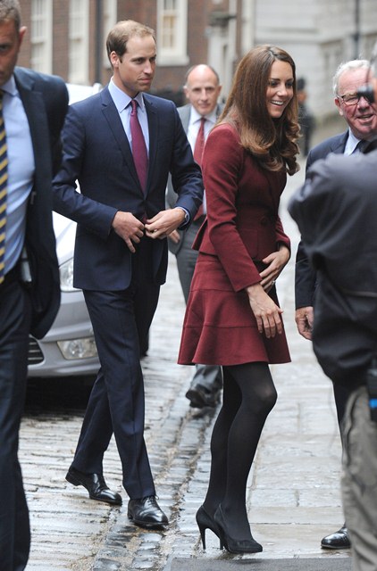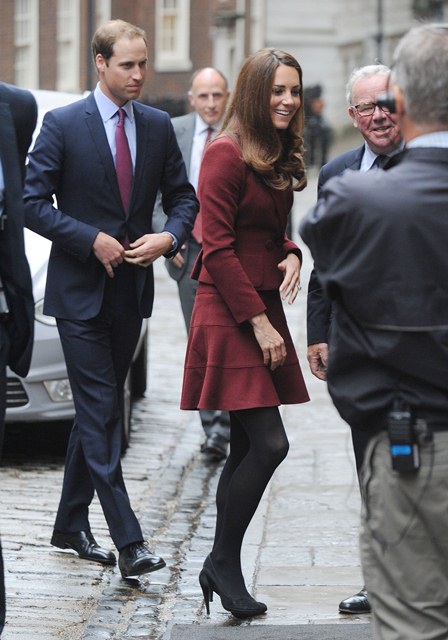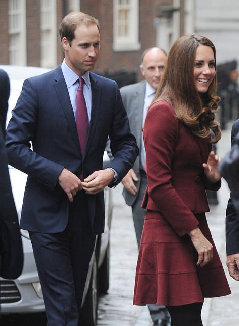 Prince William and his Catherine stepped out today in London to meet with recipients of the Queen Mother Scholarship at Middle Temple today. Oh look! The Princess is wearing the new black! (Click here for Sasha’s fall preview about the new black.) This is the Cambridges’ first public appearance together since they returned from their tour of the South Pacific, and also their first engagement at home since the release of the nude Kate on holiday photos. Good. Enough with the lawsuit threats and the handwringing and the drama. We’ll move on when you move on. And we get to move on often this week as the Cambridges have several engagements planned giving us several opportunities to speculate whether or not they’re having enough sex to make a baby.