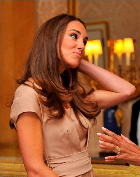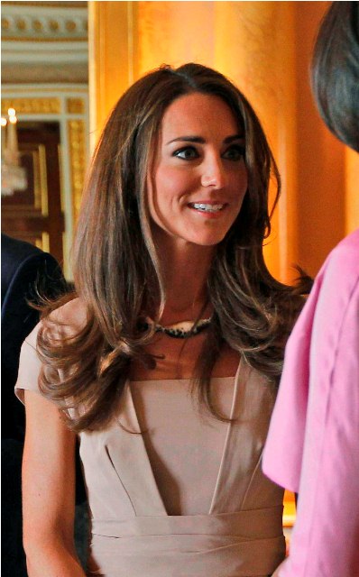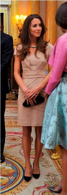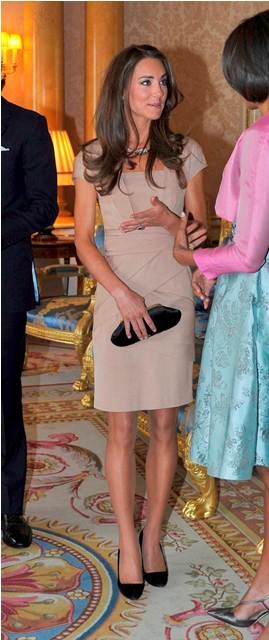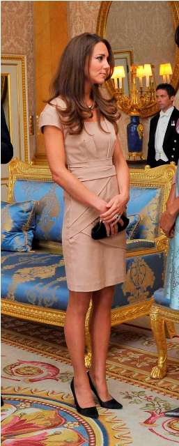 “The Duchess”, as you can see – which sounds old and crusty so let’s stick with Princess, shall we? – was understated in a nude dress that retails at just over US$200 from Reiss. Reiss! When is Reiss coming to Canada??!!!??? Click here for more on Kate’s Reiss.