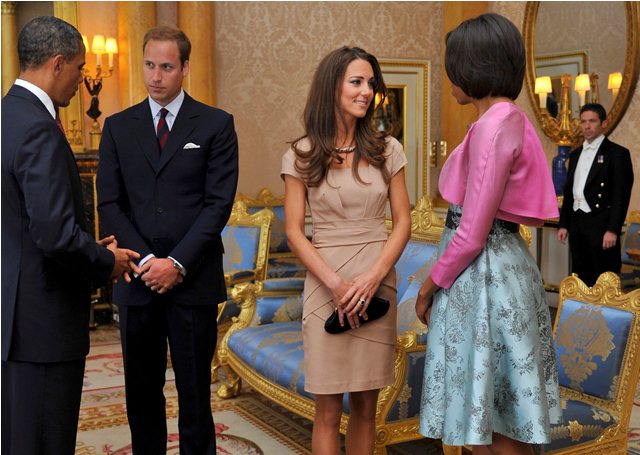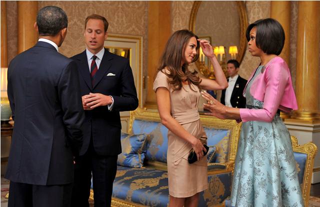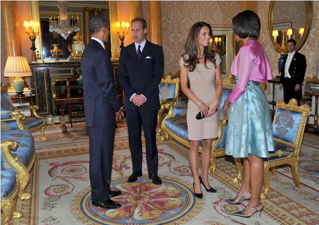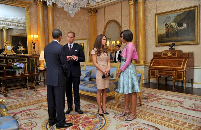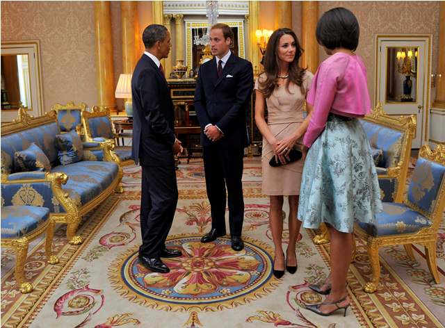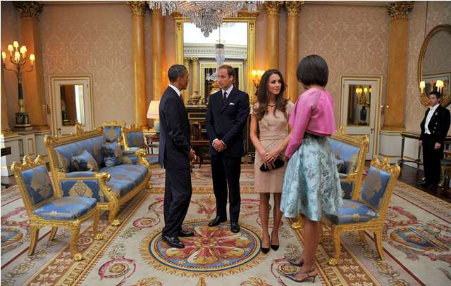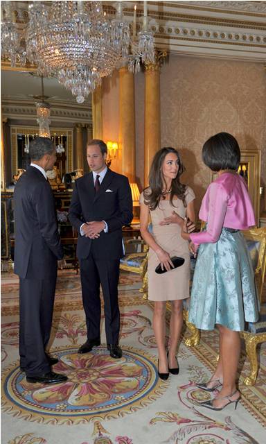President Obama and his wife Michelle are touring the UK. They cruised by Buckingham Palace today for a visit with newlyweds William and Kate, just returned from a 10 day honeymoon in the Seychelles where, amazingly, no one was able to get a photograph. Well done.