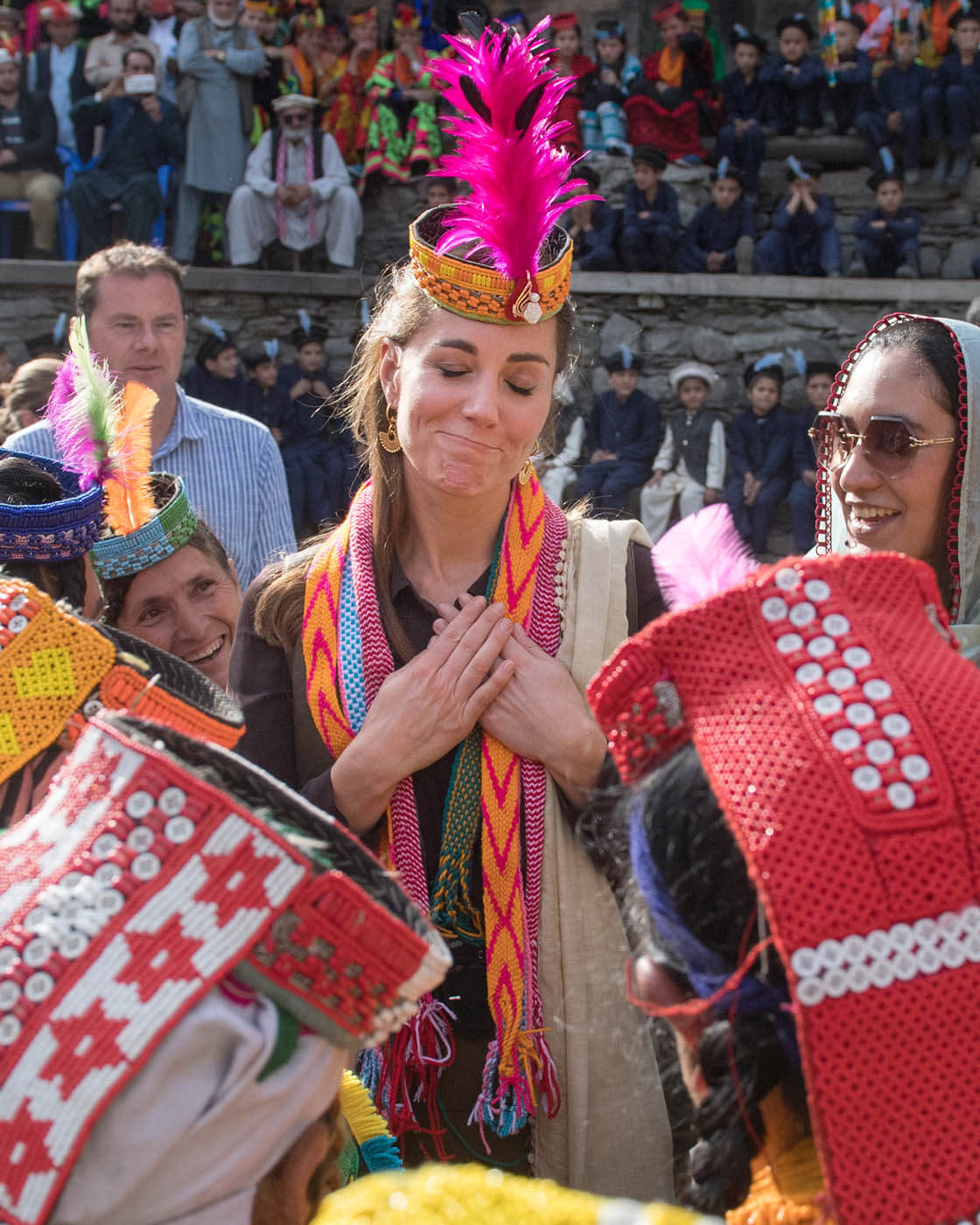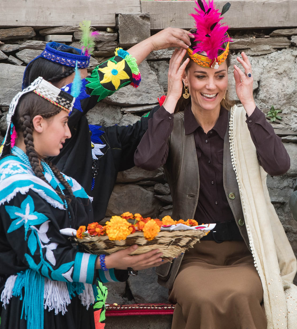 Later Will and Kate spent time with the Kalash people and Kate was given a traditional headdress as the couple learned about Kalash culture and heritage: